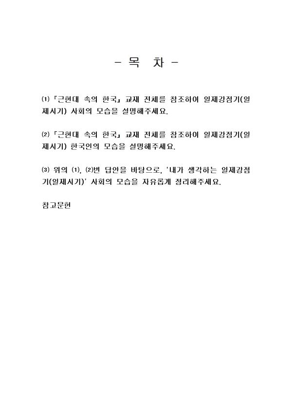 ©ç ±ÙÇö´ë ¼ÓÀÇ Çѱ¹ ±³Àç Àüü¸¦ ÂüÁ¶ÇÏ¿© ÀÏÁ¦°Á¡±â(ÀÏÁ¦½Ã±â) »çȸÀÇ ¸ð½ÀÀ» ¼³¸íÇØÁÖ¼¼¿ä. ©è ±ÙÇö´ë ¼ÓÀÇ Çѱ¹ ±³Àç Àüü¸¦ ÂüÁ¶ÇÏ¿© ÀÏÁ¦°Á¡±â(ÀÏÁ¦½Ã±â) Çѱ¹ÀÎÀÇ ¸ð½ÀÀ» ¼³¸íÇØÁÖ¼¼¿ä. ©é À§ÀÇ ©ç, ©è¹ø ´ä¾ÈÀ» ¹ÙÅÁÀ¸·Î, ¡®³»°¡ »ý°¢ÇÏ´Â ÀÏÁ¦°Á¡±â(ÀÏÁ¦½Ã±â)¡¯ »çȸÀÇ ¸ð½ÀÀ» ÀÚÀ¯·Ó°Ô Á¤¸®ÇØÁÖ¼¼¿ä. - ¸ñ Â÷ - ©ç ±ÙÇö´ë ¼ÓÀÇ Çѱ¹ ±³Àç Àüü¸¦ ÂüÁ¶ÇÏ¿© ÀÏÁ¦°Á¡±â(ÀÏÁ¦½Ã±â) »çȸÀÇ ¸ð½ÀÀ» ¼³¸íÇØÁÖ¼¼¿ä. ©è ±ÙÇö´ë ¼ÓÀÇ Çѱ¹ ±³Àç Àüü¸¦ ÂüÁ¶ÇÏ¿© ÀÏÁ¦°Á¡±â(ÀÏÁ¦½Ã±â) Çѱ¹ÀÎÀÇ ¸ð½ÀÀ» ¼³¸íÇØÁÖ¼¼¿ä. ©é À§ÀÇ ©ç, ©è¹ø ´ä¾ÈÀ» ¹ÙÅÁÀ¸·Î, ¡®³»°¡ »ý°¢ÇÏ´Â ÀÏÁ¦°Á¡±â(ÀÏÁ¦½Ã±â)¡¯ »çȸÀÇ ¸ð½ÀÀ» ÀÚÀ¯·Ó°Ô Á¤¸®ÇØÁÖ¼¼¿ä. Âü°í¹®Çå ** ÇÔ²² Á¦°øµÇ´Â Âü°íÀÚ·á ÇÑ±ÛÆÄÀÏ ** 1. ³»°¡ »ý°¢ÇÏ´Â ÀÏÁ¦°Á¡±â(ÀÏÁ¦½Ã±â) »çȸ»ó.hwp 2. ÀÏÁ¦°Á¡±â(ÀÏÁ¦½Ã±â) »çȸÀÇ ¸ð½À.hwp 3. ÀÏÁ¦°Á¡±â(ÀÏÁ¦½Ã±â) Çѱ¹ÀÎÀÇ ¸ð½À.hwp 4. ³»°¡ »ý°¢ÇÏ´Â ÀÏÁ¦°Á¡±â(ÀÏÁ¦½Ã±â) »çȸ»ó2.hwp 5. ÀÏÁ¦°Á¡±â(ÀÏÁ¦½Ã±â) »çȸÀÇ ¸ð½À2.hwp 6. ÀÏÁ¦°Á¡±â(ÀÏÁ¦½Ã±â) Çѱ¹ÀÎÀÇ ¸ð½À2.hwp ¢ºÀÚ·á³»¿ë ¹Ì¸®º¸±â