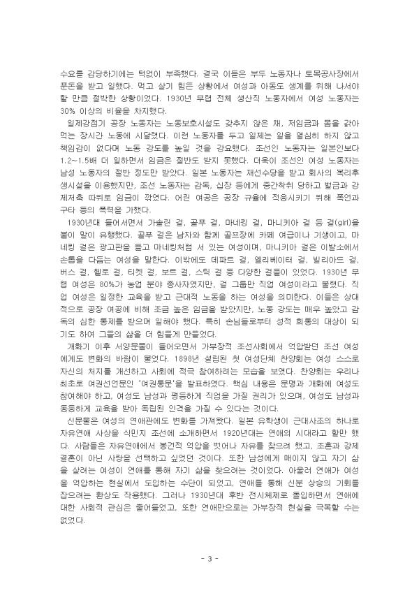 °³È±â¿Í ÀÏÁ¦½Ã±â ÀÇ»ýȰ¿¡¼ °¡Àå ´«¿¡ ¶ç´Â º¯È´Â ¾çº¹ÀÇ À¯ÇàÀÌ´Ù. ÀüÅëÇѺ¹Àº ºÒÆíÇÑ Á¡ÀÌ ÀÖ¾î Á» ´õ ÆíÇÑ °³·®ÇѺ¹À¸·Î ¹Ù²ï °ÍÀÌ´Ù. 1910³â´ë¿¡´Â ÇѺ¹À» Áñ°Ü ÀÔÀÚ´Â ÁÖÀå°ú ÇÔ²² ÇѺ¹°³·®¿îµ¿ÀÌ ÀϾ´Ù. ªÀº °ËÁ¤ ÅëÄ¡¸¶¿¡ Èò Àú°í¸®¸¦ ÀÔ´Â ½ºÅ¸ÀÏÀÇ 1920~1930³â´ë °³·®ÇѺ¹Àº Çѵ¿¾È ½Å¿©¼ºÀÇ »ó¡ÀÌ µÇ¾ú´Ù. ´Ü¹ß·ÉÀ¸·Î ÀϺ» À̹߰ü, ¾çº¹Á¡, ±¸µÎ¿Í ¸ðÀÚ °¡°Ô µîÀÌ ¸¹Àº µ·À» ¹ú¾ú´Ù. ¹Ý´ë·Î Á¤ºÎ Á¤Ã¥¿¡ ¿ªÇàÇÏ¿© ¿©ÀüÈ÷ °«, ¸Á°Ç, ÅÁ°Ç µîÀ» ÆÄ´Â »ç¶÷µéÀº ¼öÀÍÀÌ ¸¹ÀÌ ÁÙ¾úÀ» °ÍÀÌ´Ù. ÇѺ¹ ´ë½Å ¾çº¹À» ÀÔ°í »óÅõ´Â Àß¶ó ´Ü¹ßÀ» ÇÏ°í ¸ðÀÚ¸¦ ½èÀ¸´Ï, ¸¶Áö¸·À¸·Î ½Å¹ßÀÇ º¯Èµµ »ìÆìºÁ¾ß ÇÒ °ÍÀÌ´Ù. ¾çº¹¿¡´Â ±¸µÎ¸¦ ½Å°Ô µÇÁö¸¸, ÀüÅëÀûÀ¸·Î ¤½Å, ºñ´Ü½Å, °¡Á×½Å, ³ª¸·½ÅÀ» ½Å´ø Á¶¼±ÀÎÀº 1910³â´ë ÈĹݺÎÅÍ °í¹«½ÅÀ» ½Å°Ô µÇ¾ú´Ù. ½ÒÀº Á¶¼±¿¡¼ °¡Àå Áß¿äÇÏ°Ô ¿©±â´Â °î¹°ÀÌ´Ù. Á¶¼±Àº ÀüÅëÀûÀÎ ³ó¾÷»çȸÀ̹ǷΠ½Ò »ý»ê·®ÀÌ ±¹ºÎÀÇ Ã´µµÀÌÀÚ ÀϹݹ鼺ÀÇ »ýÁ¸±Ç°ú Á÷°áµÇ´Â °ÍÀÌ´Ù. ÀÏÁ¦´Â ÅäÁöÁ¶»ç¾÷°ú »ê¹ÎÁõ»ê°èȹ µîÀ» ÅëÇØ Á¶¼±¿¡¼ ÅäÁö¿Í ½ÒÀ» ¼öÅ»ÇÏ°í »ý»êµÈ ½ÒÀº ÀϺ»À¸·Î ¼ÛÃâÇß´Ù. ƯÈ÷ ÁßÀÏÀüÀï°ú ÅÂÆò¾çÀüÀïÀ¸·Î Àü½Ã¿î¿µÃ¼Á¦·Î µé¾î°¡¸é¼ ÀÏÁ¦´Â ½Ò ¹è²üÀ» Ȳ±¹½Å¹ÎÈÀÇ ¼ö´ÜÀ¸·Î Ȱ¿ëÇÏ¸é¼ ½ÒÀÌ ¾Æ´Ñ ¸¸ÁÖ¼ÓÀ̶ó´Â Àâ°îÀ» ¸¸ÁÖ¿¡¼ µé¿©¿Í ´ë¿ë½ÄÀ¸·Î Àå·ÁÇÏ¿´´Ù. ÀÌ·¸°Ô ½ÒÀÌ ±ÍÇØÁöÀÚ ½Ò¹äÀº ÀßÇØ¾ß »ýÀÏÀ̳ª ¸íÀý¿¡³ª ¸ÔÀ» ¼ö ÀÖ¾ú°í, ÁÖ½ÄÀº ²Çº¸¸®¹ä, Àâ°î, °¨ÀÚ, °³ÃÀÌ µûÀ§·Î ¹Ù²î¾ú´Ù. ±×·¯³ª ³ó¾÷»ý»ê±¸Á¶°¡ ½Ò »ý»ê Áß½ÉÀÌ µÇ¸é¼ Àâ°î »ý»êµµ ÀÌÀüº¸´Ù ÈξÀ ÁÙ¾îµé¾î Á¦´ë·Î ¸ÔÁö ¸øÇÏ´Â »ç¶÷µéÀÌ ¸¹¾Æ ¼Ò³ª¹« ²®Áú µûÀ§¸¦ ¸Ô´Â Áö°æ¿¡ À̸£·¶´Ù. ÀϺ» À½½Ä ¶ÇÇÑ °³È±â ÀÌÈÄ ³Î¸® ÆÛÁ³´Ù. ¿ìµ¿, ´ÜÆÏÁ×, ÀϺ» °úÀÚ, ´Ù²Ù¾Ó, ¾î¹¬, ÃÊ¹ä µîÀÌ ±×°ÍÀÌ´Ù. ÀϺ» ¿ä¸´ÁýÀº ÀϺ» »ç¶÷ÀÌ »ì´ø Áø°í°³¿¡ 1895³â óÀ½ »ý±ä ÀÌ·¡, ÀϺ» À½½ÄÀº Â÷Ãû Á¶¼±Àο¡°Ôµµ Àͼ÷ÇØÁ³´Ù. Èï¹Ì·Î¿î °ÍÀº ÀÏÁ¦°Á¡±â ¾ÆÁö³ë¸ðµµ¶ó´Â À½½Ä¿¡ °¨Ä¥¸ÀÀ» ³»´Â ÈÇÐÁ¶¹Ì·á°¡ µé¾î¿À¸é¼ Å« Àα⸦ ²ø¾ú´Ù´Â »ç½ÇÀÌ´Ù. ÀÌÈÄ ÇØ¹æ ÈÄ¿¡µµ ¾ÆÁö³ë¸ðµµ´Â ºÎÀ¯ÃþÀÇ °ü½ÉÀ» ¹ÞÀ¸¸ç ¹ÝÂù¿¡ »Ñ¸®°í, ¿Ö°£Àå¿¡ ¹äÀ» ºñ¸ç ¸Ô´Â Á¶¹Ì·á·Î »ç¿ëµÇ¸ç, »ç¶÷µéÀÇ ÀÔ¸ÀÀ» ±æµé¿©³õ¾Ò´Ù. Á¶¼±ÀÇ ÀüÅëÀûÀÎ ÁýÀº ±â¿ÍÁý, Ãʰ¡ÁýÀ¸·Î ´ëºÎºÐÀÇ ¹é¼ºµéÀº Ãʰ¡Áý¿¡¼ »ýȰÇß´Ù. ÁýÀº ÀÇ·ù³ª À½½Ä°ú´Â ´Þ¸® °í°¡ÀÇ »óǰÀÌ°í ¿äÁòÀÇ Ã»¾àÁ¦µµ³ª ´ëÃâ °°Àº Á¤Ã¥ÀûÀÎ µÞ¹ÞħÀÌ ÀÖ¾î¾ß º¸±ÞÀÌ ¿ëÇϹǷΠÀÏ¹Ý ¹é¼ºµéÀÌ ½±°Ô »ì ¼ö ¾ø´Ù. µû¶ó¼ °³È±â¿Í ÀÏÁ¦°Á¡±âÀÇ »ýȰ¹®È°¡ Å©°Ô ¹Ù²ï °Í°ú ºñ±³Çϸé ÁÖ°Å º¯È´Â ´õµô ¼ö¹Û¿¡ ¾ø´Ù. µµ½ÃÇü ÇÑ¿ÁÀ̳ª ¹®ÈÁÖÅÃ, ¿µ´ÜÁÖÅÿ¡ »ç´Â »ç¶÷µéÀº ¿©À¯°¡ ÀÖ´Â »ç¶÷µéÀÌ´Ù. ±×·¯³ª ³óÃÌÀ» ¶°³ª ÀÏÀÚ¸®¸¦ ã¾Æ µµ½Ã·Î ¿Â ¸¹Àº ¿µ¼¼¹ÎµéÀº Çà¶û»ìÀ̸¦ Çϰųª Å丷À» Áþ°í »ì¾Ò´Ù. 1920³â ¼¿ï Àα¸ 20¸¸ ¸í Áß¿¡¼ Çà¶ûÃþ Àα¸°¡ 4~5¸¸ ¸íÂëÀ¸·Î ÃßÁ¤ÇÒ ¸¸Å µµ½Ãºó¹ÎµéÀº Á¶¼±½Ã´ë µ¿°Å³ëºñÁ¦µµÀÇ À¯¹°°ú °°Àº Çà¶û»ìÀ̸¦ Çß´ø °ÍÀÌ´Ù. Çà¶û»ìÀ̸¶Àú ¾î·Æ°Å³ª ÁÖÀÎÁý¿¡ ¾ô¸Å¾î »ì°í ½ÍÁö ¾ÊÀº »ç¶÷Àº È긤À¸·Î ¸¸´Â Çã¼úÇÑ ¿ò¸· °°Àº Å丷À» Áþ°í »ì¾Ò´Ù. Å丷¹Î ´ëºÎºÐÀº ³¯Ç°ÆÈÀÌ, Áö°ÔǰÆÈÀÌ, °ÇÃà°ø»çÀåÀÇ ÀκΠµîÀ» ÇÏ¸ç »ý°è¸¦ À¯ÁöÇß´Ù. ÀÏÁ¦´Â Å丷¹ÎÀ» ÀáÀçÀû ¹üÁËÀÚ·Î ÀνÄÇÏ°í ºó¹Î´ëÃ¥À» ¼¼¿öÁö ¾Ê¾Ò°í, À̵éÀ» ÀϺ»ÀÇ Åä¸ñ°ø»çÀåÀ̳ª ź°ø µî¿¡ µ¿¿øÇؼ ³ëµ¿·Â ºÎÁ·À» ÇØ°áÇÏ·Á Çß´Ù. ©è ±ÙÇö´ë ¼ÓÀÇ Çѱ¹ ±³Àç Àüü¸¦ ÂüÁ¶ÇÏ¿© ÀÏÁ¦°Á¡±â(ÀÏÁ¦½Ã±â) Çѱ¹ÀÎÀÇ ¸ð½ÀÀ» ¼³¸íÇØÁÖ¼¼¿ä. ÀÏÁ¦°Á¡±â¿¡µµ Á¶¼±Àο¡°Ô´Â ³ó¾÷ÀÌ ÇÙ½É »ê¾÷ÀÌ´Ù. ÀÏÁ¦´Â ÅäÁöÁ¶»ç»ç¾÷, »ê¹ÎÁõ½Ä°èȹ, ³óÃÌÁøÈï¿îµ¿, Á¶¼±Áõ¹Ì°èȹ µîÀ» ÅëÇØ ½Ñ °ªÀ¸·Î ½ÒÀ» »ç¼ ÀϺ»À¸·Î º¸³»´Âµ¥ Ç÷¾ÈÀ̾ú´Ù. ³ó¹ÎÀÇ °æÀ۱ǰú µµÁö±Ç µîÀ» ºÎÁ¤Çϰí ÁöÁÖÀÇ ¼ÒÀ¯±Ç¸¸ ÀÎÁ¤ÇÔÀ¸·Î½á ÁöÁÖ¸¦ ÀÏÁ¦ÀÇ ÁöÁö¼¼·ÂÀ¸·Î ÆíÀÔ½ÃŰ·Á°í ÇÏ¿´´Ù. ÁöÁÖ´Â °³Ç× ÈÄ ¼öÃâÀÌ ´Ã°í ½Ò°ªÀº ¿Ã¶ó ¼öÀÔÀº ´Ã¾î³µ´Ù. ¶ÇÇÑ ÁöÁÖ´Â ÀÏÁ¦°Á¡±â Á¶¼±Ãѵ¶ºÎÀÇ ³ó¾÷Á¤Ã¥À¸·Î Å« ÀÌÀÍÀ» º¸¾Ò´Ù. ÁöÁÖ´Â ´õ ¸¹Àº ÀÌÀÍÀ» À§ÇØ ³ó¾÷°æ¿µ¿¡ Àû±Ø °³ÀÔÇÏ¿© ¼ÒÀÛÁ¶°ÇÀ» ÁöÁ