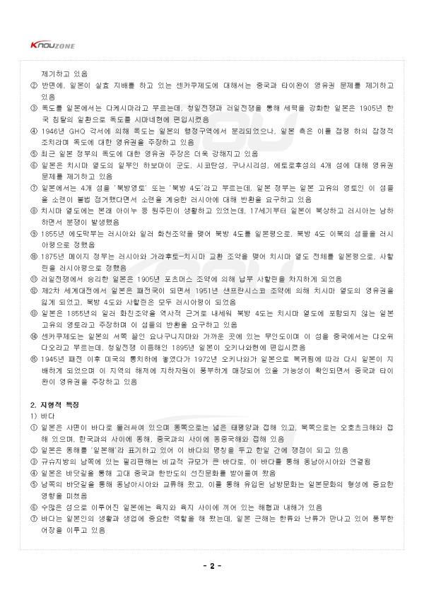 Á¦1Àå ÀϺ»¿µµ 1. ¿µÅä 1) À§Ä¡ ¨ç ÀϺ»Àº À¯¶ó½Ã¾Æ ´ë·úÀÇ µ¿ÂÊ ³¡¿¡¼ Á¶±Ý ¶³¾îÁø °÷¿¡ À§Ä¡ÇÑ ¼¶³ª¶óÀÓ ¨è ÈÊÄ«À̵µ, È¥½´, ½ÃÄÚÄí, ±Ô½´ÀÇ 4°³ÀÇ Å« ¼¶°ú 1¸¸ 4,000¿© °³ÀÇ ¼¶À¸·Î ÀÌ·ç¾îÁü ¨é ºÏµ¿¿¡¼ ³²¼ ¹æÇâÀ¸·Î ¿©·¯ ¼¶ÀÌ ¿À» Áö¾î Ȱ¸ð¾çÀ¸·Î ´Ã¾î¼ ÀÖ´Ù´Â Àǹ̿¡¼ ÀϺ»¿µµ¶ó°í ºÒ¸² ¨ê ÀϺ»ÀÇ À§Ä¡¸¦ ÁÖº¯ ¹Ù´Ù¸¦ ÅëÇØ »ìÆìº¸¸é, µ¿Âʰú ³²ÂÊ¿¡´Â µå³ÐÀº ÅÂÆò¾çÀÌ ÆîÃÄÁ® ÀÖÀ½ ¨ë ºÏÂÊ¿¡´Â ·¯½Ã¾Æ¿ÍÀÇ »çÀÌ¿¡ ¿ÀÈ£Ã÷Å©ÇØ°¡ ÀÖ°í, ¼ÂÊ¿¡´Â Çѹݵµ¿ÍÀÇ »çÀÌ¿¡ µ¿Çذ¡ ÀÖÀ½ ¨ì ¼³²ÂÊ¿¡´Â Áß±¹´ë·ú°úÀÇ »çÀÌ¿¡ µ¿Áß±¹Çذ¡ ÀÖÀ¸¸ç, µ¿Áß±¹ÇØÀÇ ³²ÂÊÀ¸·Î´Â Çʸ®ÇɰúÀÇ »çÀÌ¿¡ Çʸ®ÇÉÇØ°¡ ÀÖÀ½ 2) ¿µÅä ¹üÀ§ ¨ç 2022³â ±âÁØÀ¸·Î ÀϺ»ÀÇ ¿µÅä ¸éÀûÀº ¾à 37.8¸¸§´·Î ¼¼°è ÁֱDZ¹°¡ Áß¿¡¼ 63¹øÂ°¿¡ ÇØ´çµÇ¸ç ÀÌ ¸éÀûÀº µ¶Àϰú ºñ½ÁÇϸç, ¿µ±¹À̳ª ÀÌÅ»¸®¾Æº¸´Ù Å ¨è 4´ë ¼¶ÀΠȪīÀ̵µ, È¥½´, ½ÃÄÚÄí, ±Ô½´ Áß¿¡¼´Â È¥½´ÀÇ ¸éÀûÀÌ 23.1 ¸¸§´·Î °¡Àå Å©°í, ±×´ÙÀ½À¸·Î ȪīÀ̵µ 7.8§´, ±Ô½´ 4.4km¶ó ½ÃÄÚÄí 1.8§´ ¼øÀÓ ¨é È¥½´ÀÇ ¸éÀûÀÌ Çѹݵµ¿Í ºñ½ÁÇÑ Å©±â ÀÓÀ» ¾Ë ¼ö ÀÖÀ½ ¨ê ÀϺ»ÀÇ ¹èŸÀû °æÁ¦¼ö¿ªÀº ±¹Åä ¸éÀûÀÇ 10¹è ÀÌ»óÀ¸·Î ¼¼°è¿¡¼ 6À§¸¦ ³ªÅ¸³¿ ¨ë ¹èŸÀû °æÁ¦¼ö¿ªÀ̶õ ÇÑ ³ª¶óÀÇ °æÁ¦Àû ÁÖ±ÇÀÌ ¹ÌÄ¡´Â ¼ö¿ªÀ» ¸»Çϴµ¥, ÇØ¾È¼±À¸·ÎºÎÅÍ 200ÇØ¸®¸¦ ±âÁØÀ¸·Î ¼³Á¤µÊ 3) ¸Ö¸® ¶³¾îÁø ¼¶ ¨ç º»Åä¿¡¼ ¸Ö¸® ¶³¾îÁø ¼¶À¸·Î ºÏÂÊ¿¡´Â Ä¡½Ã¸¶¿µµ°¡ ÀÖÀ½ ¨è Ä¡½Ã¸¶ ¿µµ´Â ȪīÀ̵µ¿Í įÂ÷Ä«¹Ýµµ »çÀÌ¿¡ Ȱ¸ð¾çÀ¸·Î ±æ°Ô ´Ã¾î¼ ÀÖ´Â ¼¶µéÀ» ¸»Çϴµ¥, ±¹Á¦ÀûÀ¸·Î´Â Äí¸±¿µµ¶ó°í ÇÔ ¨é °£Åä Áö¹æ ³²ÂÊ¿¡´Â ÀÌÁîÁ¦µµ°¡ ÀÖÀ¸¸ç ÀÌÁîÁ¦µµ´Â 100¿© °³ÀÇ Å©°í ÀÛÀº ¼¶µéÀ» ¸»Çϴµ¥, ÇàÁ¤±¸¿ª»ó µµÄìµµ¿¡ ¼ÓÇÔ ¨ê ÀÌÁîÁ¦µµÀÇ ÁÖ¿ä ¼¶À¸·Î´Â ¿À½Ã¸¶, µµ½Ã¸¶, ´ÏÁö¸¸, ¹Ì¾ßÄÉÁö¸¶, ÇÏÄ¡Á¶Áö¸¶ µîÀÌ ÀÖÀ½ ¨ë ÀÌÁîÁ¦µµÀÇ ³²ÂÊ¿¡´Â ¿À°¡»ç¿Í¶óÁ¦µµ°¡ ÀÖÀ¸¸ç ¿À°¡»ç¿Í¶óÁ¦µµ´Â µµÄì¿¡¼ ³²ÂÊÀ¸·Î 1,000km ¶³¾îÁø ÅÂÆò¾ç»óÀÇ 30¿© °³ÀÇ ¼¶À» ¸»Çϴµ¥, ÇàÁ¤±¸¿ª»ó µµÄìµµ¿¡ ¼ÓÇÔ ¨ì ¿À°¡»ç¿Í¶óÁ¦µµ´Â 1945³â ÆÐÀü ÀÌÈÄ ¹ÌÁ¡·É±ºÀÇ ÅëÄ¡¸¦ ¹Þ´Ù°¡ 1968³â ÀϺ»¿¡ ¹ÝȯµÇ¾úÀ½ ¨í ±Ô½´Áö¹æ ³²¼ÂÊ¿¡´Â ³¼¼ÀÌÁ¦µµ°¡ ÀÖÀ¸¸ç ³¼¼ÀÌÁ¦µµ¿¡´Â ¿À½º¸¶ Á¦µµ, µµÄ«¶ó¿µµ, ¾Æ¸¶¹ÌÁ¦µµ, ¿ÀŰ³ª¿ÍÁ¦µµ, ¹Ì¾ßÄÚ¿µµ£¬¾ß¿¡¾ß¸¶¿µµ, ¼¾Ä«ÄíÁ¦µµ, ´ÙÀÌÅäÁ¦µµ µîÀÇ ¼¶µéÀÌ ÀÖÀ½ 4) ¿µÅä ºÐÀï ¨ç ÇöÀç ÀϺ» Á¤ºÎ´Â Çѱ¹¿¡ ´ëÇØ¼´Â µ¶µµÀÇ ¿µÀ¯±Ç ¹®Á¦¸¦, ·¯½Ã¾Æ¿¡ ´ëÇØ¼´Â ºÏ¹æ 4µµÀÇ ¿µÀ¯±Ç ¹®Á¦¸¦ Á¦±âÇϰí ÀÖÀ½ ¨è ¹Ý¸é¿¡, ÀϺ»ÀÌ ½ÇÈ¿ Áö¹è¸¦ Çϰí ÀÖ´Â ¼¾Ä«ÄíÁ¦µµ¿¡ ´ëÇØ¼´Â Áß±¹°ú ŸÀÌ¿ÏÀÌ ¿µÀ¯±Ç ¹®Á¦¸¦ Á¦±âÇϰí ÀÖÀ½ ¨é µ¶µµ¸¦ ÀϺ»¿¡¼´Â ´ÙÄɽø¶¶ó°í ºÎ¸£´Âµ¥, ûÀÏÀüÀï°ú ·¯ÀÏÀüÀïÀ» ÅëÇØ ¼¼·ÂÀ» °ÈÇÑ ÀϺ»Àº 1905³â Çѱ¹ ħŻÀÇ ÀÏȯÀ¸·Î µ¶µµ¸¦ ½Ã¸¶³×Çö¿¡ ÆíÀÔ½ÃÄ×À½ ¨ê 1946³â GHQ °¢¼¿¡ ÀÇÇØ µ¶µµ´Â ÀϺ»ÀÇ ÇàÁ¤±¸¿ª¿¡¼ ºÐ¸®µÇ¾úÀ¸³ª, ÀϺ» ÃøÀº À̸¦ Á¡·É ÇÏÀÇ ÀáÁ¤Àû Á¶Ä¡¶ó¸ç µ¶µµ¿¡ ´ëÇÑ ¿µÀ¯±ÇÀ» ÁÖÀåÇϰí ÀÖÀ½ ¨ë ÃÖ±Ù ÀϺ» Á¤ºÎÀÇ µ¶µµ¿¡ ´ëÇÑ ¿µÀ¯±Ç ÁÖÀåÀº ´õ¿í °ÇØÁö°í ÀÖÀ½ ¨ì ÀϺ»Àº Ä¡½Ã¸¶ ¿µµÀÇ ÀϺÎÀÎ ÇϺ¸¸¶ÀÌ ±ºµµ, ½ÃÄÚź¼¶, ±¸³ª½Ã¸®¼¶, ¿¡Åä·ÎÈļ¶ÀÇ 4°³ ¼¶¿¡ ´ëÇØ ¿µÀ¯±Ç ¹®Á¦¸¦ Á¦±âÇϰí ÀÖÀ½ ¨í ÀϺ»¿¡¼´Â 4°³ ¼¶À» ¡®ºÏ¹æ¿µÅ䡯 ¶Ç´Â ¡®ºÏ¹æ 4µµ¡¯¶ó°í ºÎ¸£´Âµ¥, ÀϺ» Á¤ºÎ´Â ÀϺ» °íÀ¯ÀÇ ¿µÅäÀÎ ÀÌ ¼¶µéÀ» ¼Ò·ÃÀÌ ºÒ¹ý Á¡°ÅÇß´Ù¸é¼ ¼Ò·ÃÀ» °è½ÂÇÑ ·¯½Ã¾Æ¿¡ ´ëÇØ ¹ÝȯÀ» ¿ä±¸Çϰí ÀÖÀ½ ¨î Ä¡½Ã¸¶ ¿µµ¿¡´Â º»·¡ ¾ÆÀÌ´© µî ¿øÁÖ¹ÎÀÌ »ýȰÇϰí ÀÖ¾ú´Âµ¥, 17¼¼±âºÎÅÍ ÀϺ»ÀÌ ºÏ»óÇÏ°í ·¯½Ã¾Æ´Â ³²ÇÏÇÏ¸é¼ ºÐÀïÀÌ ¹ß»ýÇßÀ½ ¨ï 1855³â ¿¡µµ¸·ºÎ´Â ·¯½Ã¾Æ¿Í ÀÏ·¯ ÈõÁ¶¾àÀ» ¸Î¾î ºÏ¹æ 4µµ¸¦ ÀϺ»·ÉÀ¸·Î, ºÏ¹æ 4µµ À̺ÏÀÇ ¼¶µéÀ» ·¯½Ã¾Æ·ÉÀ¸·Î Á¤ÇßÀ½ ¨ð 1875³â ¸ÞÀÌÁö Á¤ºÎ´Â ·¯½Ã¾Æ¿Í °¡¶óÈÄÅ䡪ġ½Ã¸¶ ±³È¯ Á¶¾àÀ» ¸Î¾î Ä¡½Ã¸¶ ¿µµ Àüü¸¦ ÀϺ»·ÉÀ¸·Î, »çÇÒ ¸°À» ·¯½Ã¾Æ·ÉÀ¸·Î Á¤ÇßÀ½ ¨ñ ·¯ÀÏÀüÀï¿¡¼ ½Â¸®ÇÑ ÀϺ»Àº 1905³â Æ÷Ã÷¸Ó½º Á¶¾à¿¡ ÀÇÇØ ³³ºÎ »çÇÒ¸°À» Â÷ÁöÇÏ°Ô µÇ¾úÀ½ ¨ò Á¦2Â÷ ¼¼°è´ëÀü¿¡¼ ÀϺ»Àº ÆÐÀü±¹ÀÌ µÇ¸é¼ 1951³â »÷ÇÁ¶õ½Ã½ºÄÚ Á¶¾à¿¡ ÀÇÇØ Ä¡½Ã¸¶ ¿µµÀÇ ¿µÀ¯±ÇÀ» ÀÒ°Ô µÇ¾ú°í, ºÏ¹æ 4µµ¿Í »çÇÒ¸°Àº ¸ðµÎ ·¯½Ã¾Æ·ÉÀÌ µÇ¾úÀ½ ¨ó ÀϺ»Àº 1855³âÀÇ 
