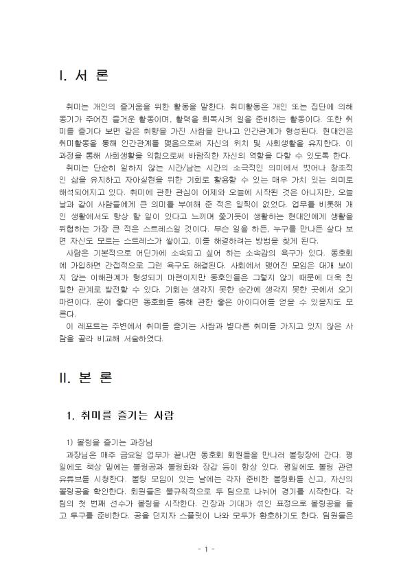 - ¸ñ Â÷ - I. ¼ ·Ð II. º» ·Ð 1. Ãë¹Ì¸¦ Áñ±â´Â »ç¶÷ 2. º°´Ù¸¥ Ãë¹Ì¸¦ °¡Áö°í ÀÖÁö ¾ÊÀº »ç¶÷ 3. Ãë¹Ì¸¦ °¡Áö´Â °ÍÀÇ ÀåÁ¡ ¹× ´ÜÁ¡ III. °á ·Ð Âü°í¹®Çå ** ÇÔ²² Á¦°øµÇ´Â Âü°íÀÚ·á ÇÑ±ÛÆÄÀÏ ** 1. ´ëÀΰü°è.hwp 2. ´ëÀΰü°è2.hwp 3. »î¿¡ ´ëÇÑ ¸¸Á·µµ.hwp 4. »î¿¡ ´ëÇÑ ¸¸Á·µµ2.hwp 5. ½Ã°£ Ȱ¿ë ¹æ½Ä.hwp 6. ½Ã°£ Ȱ¿ë ¹æ½Ä2.hwp 7. Ãë¹Ì¸¦ °¡Áö´Â °ÍÀÇ ÀåÁ¡ ¹× ´ÜÁ¡.hwp 8. ¼·Ð ÀÛ¼º½Ã ÂüÁ¶.hwp 9. °á·Ð ÀÛ¼º½Ã ÂüÁ¶.hwp 10. ¼·Ð ÀÛ¼º½Ã ÂüÁ¶2.hwp 11. °á·Ð ÀÛ¼º½Ã ÂüÁ¶2.hwp ¢ºÀÚ·á³»¿ë ¹Ì¸®º¸±â