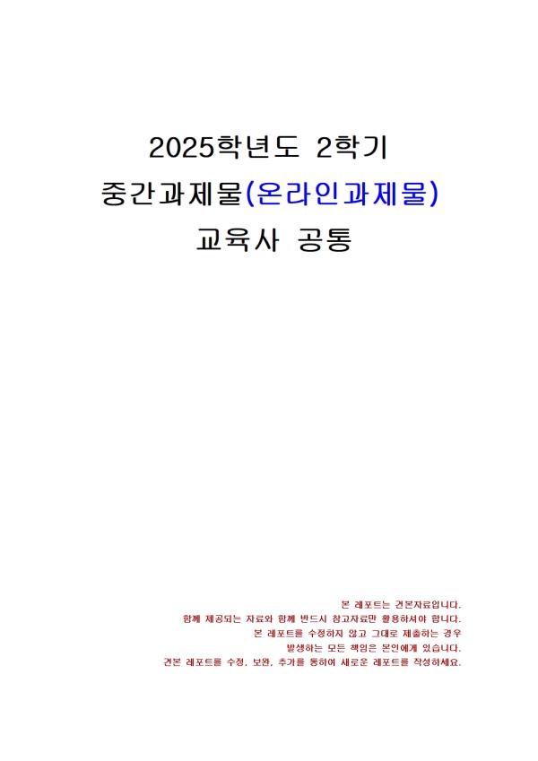 | 2025³â 2Çб⠱³À°»ç Áß°£½ÃÇè°úÁ¦¹° °øÅë(¿ì¸®³ª¶ó °í´ë¿¡¼ ±Ù´ë ±³À°»ç»ó°¡ ¹× ½Çõ°¡) |