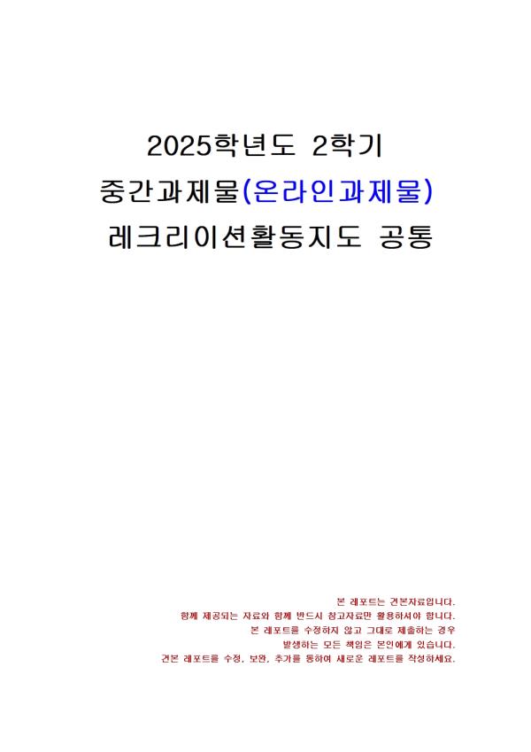 2025³â 2Çб⠷¹Å©¸®¿¡À̼ÇȰµ¿Áöµµ Áß°£½ÃÇè°úÁ¦¹° °øÅë(¿©°¡, ·¹Å©¸®¿¡À̼Ç, ³îÀÌ)