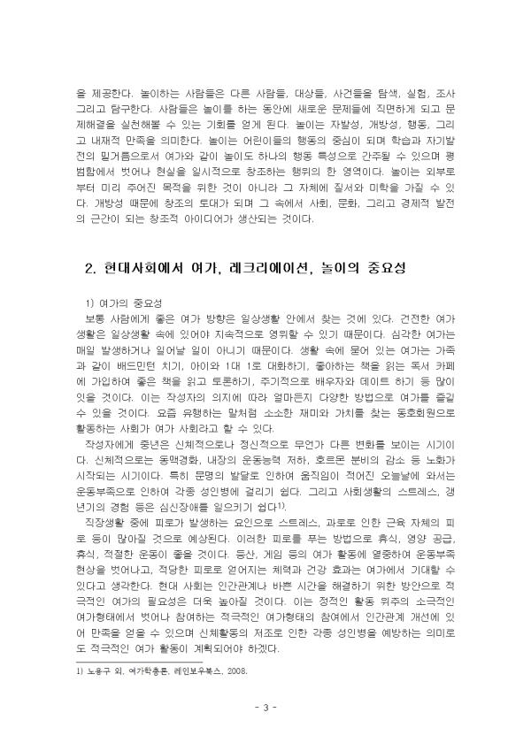 ÀÌ ·¹Æ÷Æ®´Â ¿©°¡, ·¹Å©¸®¿¡À̼Ç, ³îÀÌÀÇ °³³ä°ú Â÷ÀÌÁ¡À» ¼­¼úÇϰí, Çö´ë»çȸ¿¡¼­ ¿©°¡, ·¹Å©¸®¿¡À̼Ç, ³îÀÌÀÇ Á߿伺À» ±â¼úÇÏ¿´´Ù.