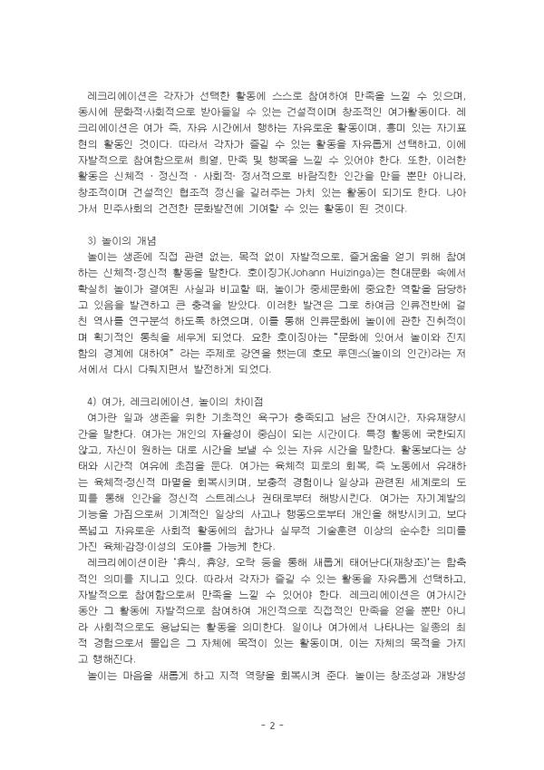¿©°¡, ·¹Å©¸®¿¡À̼Ç, ³îÀÌÀÇ °³³ä°ú Â÷ÀÌÁ¡À» ¼¼úÇϽÿÀ. ±×¸®°í Çö´ë»çȸ¿¡¼ ¿©°¡, ·¹Å©¸®¿¡À̼Ç, ³îÀÌÀÇ Á߿伺À» ±â¼úÇϽÿÀ.