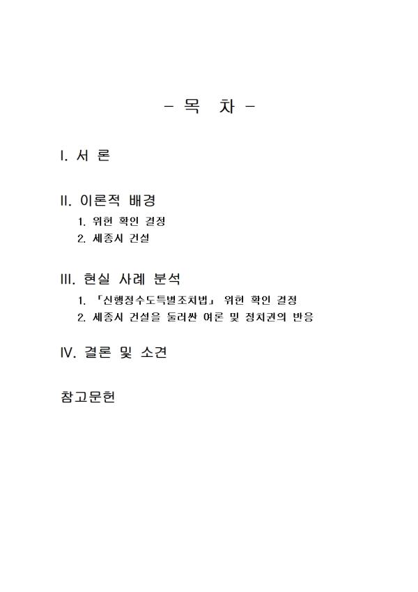 - ¸ñ Â÷ - I. ¼ ·Ð II. ÀÌ·ÐÀû ¹è°æ 1. À§Çå È®ÀÎ °áÁ¤ 2. ¼¼Á¾½Ã °Ç¼³ III. Çö½Ç »ç·Ê ºÐ¼® 1. ¡¸½ÅÇàÁ¤¼öµµÆ¯º°Á¶Ä¡¹ý¡¹ À§Çå È®ÀÎ °áÁ¤ 2. ¼¼Á¾½Ã °Ç¼³À» µÑ·¯½Ñ ¿©·Ð ¹× Á¤Ä¡±ÇÀÇ ¹ÝÀÀ IV. °á·Ð ¹× ¼Ò°ß Âü°í¹®Çå ** ÇÔ²² Á¦°øµÇ´Â Âü°íÀÚ·á ÇÑ±ÛÆÄÀÏ ** 1. ÀÌ·ÐÀû ¹è°æ.hwp 2. ÀÌ·ÐÀû ¹è°æ2.hwp 3. Çö½Ç »ç·Ê ºÐ¼®.hwp 4. Çö½Ç »ç·Ê ºÐ¼®2.hwp 5. ¼·Ð ÀÛ¼º½Ã ÂüÁ¶.hwp 6. ¼·Ð ÀÛ¼º½Ã ÂüÁ¶2.hwp 7. °á·Ð ¹× ¼Ò°ß.hwp 8. °á·Ð ¹× ¼Ò°ß2.hwp ¢ºÀÚ·á³»¿ë ¹Ì¸®º¸±â