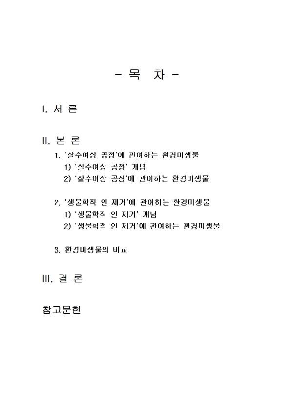 - ¸ñ Â÷ - I. ¼ ·Ð II. º» ·Ð 1. ¡®»ì¼ö¿©»ó °øÁ¤¡¯¿¡ °ü¿©Çϴ ȯ°æ¹Ì»ý¹° 1) ¡®»ì¼ö¿©»ó °øÁ¤¡¯ °³³ä 2) ¡®»ì¼ö¿©»ó °øÁ¤¡¯¿¡ °ü¿©Çϴ ȯ°æ¹Ì»ý¹° 2. ¡®»ý¹°ÇÐÀû ÀÎ Á¦°Å¡¯¿¡ °ü¿©Çϴ ȯ°æ¹Ì»ý¹° 1) ¡®»ý¹°ÇÐÀû ÀÎ Á¦°Å¡¯ °³³ä 2) ¡®»ý¹°ÇÐÀû ÀÎ Á¦°Å¡¯¿¡ °ü¿©Çϴ ȯ°æ¹Ì»ý¹° 3. ȯ°æ¹Ì»ý¹°ÀÇ ºñ±³ III. °á ·Ð Âü°í¹®Çå ** ÇÔ²² Á¦°øµÇ´Â Âü°íÀÚ·á ÇÑ±ÛÆÄÀÏ ** 1. »ì¼ö¿©»ó °øÁ¤°ú »ý¹°ÇÐÀû ÀÎ Á¦°Å ȯ°æ¹Ì»ý¹° ºñ±³.hwp 2. »ì¼ö¿©»ó °øÁ¤°ú »ý¹°ÇÐÀû ÀÎ Á¦°Å ȯ°æ¹Ì»ý¹° ºñ±³2.hwp 3. »ì¼ö¿©»ó °øÁ¤¿¡ °ü¿©Çϴ ȯ°æ¹Ì»ý¹°.hwp 4. »ì¼ö¿©»ó °øÁ¤¿¡ °ü¿©Çϴ ȯ°æ¹Ì»ý¹°2.hwp 5. »ý¹°ÇÐÀû ÀÎ Á¦°Å¿¡ °ü¿©Çϴ ȯ°æ¹Ì»ý¹°.hwp 6. »ý¹°ÇÐÀû ÀÎ Á¦°Å¿¡ °ü¿©Çϴ ȯ°æ¹Ì»ý¹°2.hwp 7. ¼·Ð ÀÛ¼º½Ã ÂüÁ¶.hwp 8. °á·Ð ÀÛ¼º½Ã ÂüÁ¶.hwp 9. ¼·Ð ÀÛ¼º½Ã ÂüÁ¶2.hwp 10. °á·Ð ÀÛ¼º½Ã ÂüÁ¶2.hwp ¢ºÀÚ·á³»¿ë ¹Ì¸®º¸±â