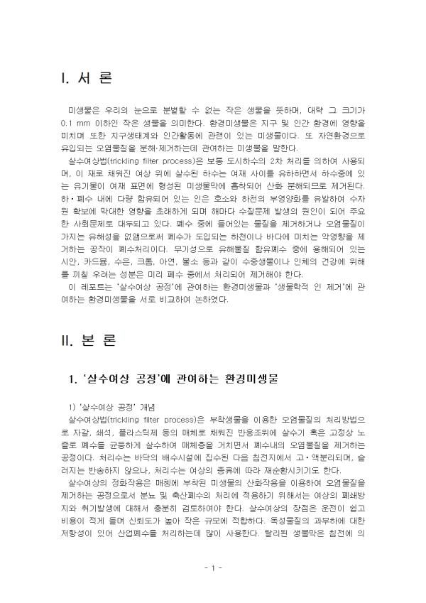 ¡®»ì¼ö¿©»ó °øÁ¤¡¯¿¡ °ü¿©Çϴ ȯ°æ¹Ì»ý¹°°ú ¡®»ý¹°ÇÐÀû ÀÎ Á¦°Å¡¯¿¡ °ü¿©Çϴ ȯ°æ¹Ì»ý¹°À» ¼·Î ºñ±³ÇÏ¿© ¼·Ð, º»·Ð ¹× °á·ÐÀ¸·Î ³ª´©¾î ³íÇϽÿÀ.