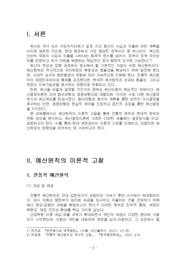 ¿¹»êÀº ±¹°¡ ¶Ç´Â Áö¹æÀÚÄ¡´Üü°¡ ÀÏÁ¤ ±â°£ µ¿¾ÈÀÇ ¼öÀÔ°ú ÁöÃâ¿¡ °üÇÑ °èȹÀ» ¼öÄ¡·Î Ç¥ÇöÇÑ °ÍÀ¸·Î, Çö´ë ÇàÁ¤¿¡¼ °¡Àå Áß¿äÇÑ Á¤Ã¥¼ö´Ü Áß ÇϳªÀÌ´Ù. ¿¹»êÀº ´Ü¼øÈ÷ ÀçÁ¤ÀÇ ¼öÀÔ°ú ÁöÃâÀ» ³ªÅ¸³»´Â ȸ°èÀû ¹®¼¸¦ ³Ñ¾î¼, Á¤ºÎÀÇ Á¤Ã¥ ¿ì¼±¼øÀ§¸¦ ¹Ý¿µÇÏ°í ±¹°¡ ÀÚ¿øÀ» ¹èºÐÇÏ´Â ÇÙ½ÉÀûÀÎ Á¤Ä¡¡¤ÇàÁ¤Àû µµ±¸·Î ±â´ÉÇÑ´Ù. ¿¹»êÀÇ Æí¼º°ú ÁýÇà °úÁ¤¿¡¼ ÁؼöÇØ¾ß ÇÒ ±âº»ÀûÀÎ ÁöħÀÌ ¹Ù·Î ¿¹»ê¿øÄ¢ÀÌ´Ù. ¿¹»ê¿øÄ¢Àº ¿ª»çÀûÀ¸·Î ±¹°¡ÀçÁ¤ÀÇ Åõ¸í¼º°ú È¿À²¼ºÀ» È®º¸Çϱâ À§ÇØ ¹ßÀüÇØ ¿ÔÀ¸¸ç, ½Ã´ëÀû ¿ä±¸¿Í ÇàÁ¤È¯°æÀÇ º¯È¿¡ µû¶ó Áö¼ÓÀûÀ¸·Î ÁøÈÇØ ¿Ô´Ù. ÀüÅëÀû ¿¹»ê¿øÄ¢ÀÌ ÀçÁ¤¹ÎÁÖÁÖÀÇ¿Í ÅëÁ¦¸¦ °Á¶Çß´Ù¸é, Çö´ëÀû ¿¹»ê¿øÄ¢Àº ¼º°ú¿Í È¿À²¼º, ±×¸®°í ÀçÁ¤ÀÇ Áö¼Ó°¡´É¼ºÀ» Áß½ÃÇÏ´Â ¹æÇâÀ¸·Î º¯ÈÇϰí ÀÖ´Ù. ÇÑÆí, ¿¹»êÀ» ¾î¶»°Ô °áÁ¤ÇÒ °ÍÀΰ¡ÀÇ ¹®Á¦´Â ¿¹»êÀÌ·ÐÀÇ ÇÙ½ÉÀûÀÎ ÁÖÁ¦ÀÌ´Ù. ¿¹»ê°áÁ¤ÀÌ·ÐÀº Å©°Ô ÇÕ¸®¸ðÇü°ú Á¡Áõ¸ðÇüÀ¸·Î ´ëº°µÇ¸ç, °¢°¢Àº ¼·Î ´Ù¸¥ ¿¹»ê°áÁ¤¹æ½Ä°ú ¿¹»êÁ¦µµ¸¦ ź»ý½ÃÄ×´Ù. ÇÕ¸®¸ðÇüÀº ºÐ¼®°ú °èȹÀ» ÅëÇÑ ÃÖÀûÀÇ ÀÇ»ç°áÁ¤À» Ãß±¸ÇÏ´Â ¹Ý¸é, Á¡Áõ¸ðÇüÀº Çö½ÇÀû Á¦¾àÀ» ÀÎÁ¤Çϰí Á¡ÁøÀû Á¶Á¤À» ÅëÇÑ ¿¹»ê°áÁ¤À» ÁöÁöÇÑ´Ù. - Áß·« - II. ¿¹»ê¿øÄ¢ÀÇ ÀÌ·ÐÀû °íÂû 1. ÀüÅëÀû ¿¹»ê¿øÄ¢ (1) °³³ä ¹× ¹è°æ ÀüÅëÀû ¿¹»ê¿øÄ¢Àº ±Ù´ë ÀÔÇå±¹°¡°¡ ¼º¸³ÇÏ´ø 19¼¼±â ÈÄ¹Ý ¼±¸¿¡¼ ü°èȵǾú´Ù. ´ç½Ã ÀÇȸ´Â ÇàÁ¤ºÎ°¡ ÀÓÀÇ·Î ¼¼±ÝÀ» ¡¼öÇϰí ÁöÃâÇÏ´Â °ÍÀ» °ßÁ¦Çϱâ À§ÇØ ¿¹»ê Æí¼º¡¤ÁýÇàÀÇ ±Ô¹üÀ» È®¸³ÇϰíÀÚ Çß´Ù. ÀÌ·¯ÇÑ ¿øÄ¢Àº ¹ÎÁÖÀû ÅëÁ¦, ÀçÁ¤ÀÇ Åõ¸í¼º, ÀçÁ¤ °ÇÀü¼º È®º¸¸¦ ÇÙ½É °¡Ä¡·Î »ï´Â´Ù. -Áß·«- |