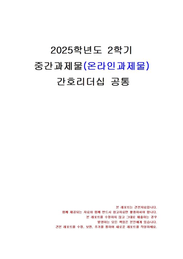 2025³â 2Çб⠰£È£¸®´õ½Ê Áß°£½ÃÇè°úÁ¦¹° °øÅë(¸®´õ½Å°ú °ü¸®ÀÇ Â÷ÀÌÁ¡, ºñÆø·Â ´ëÈ) |