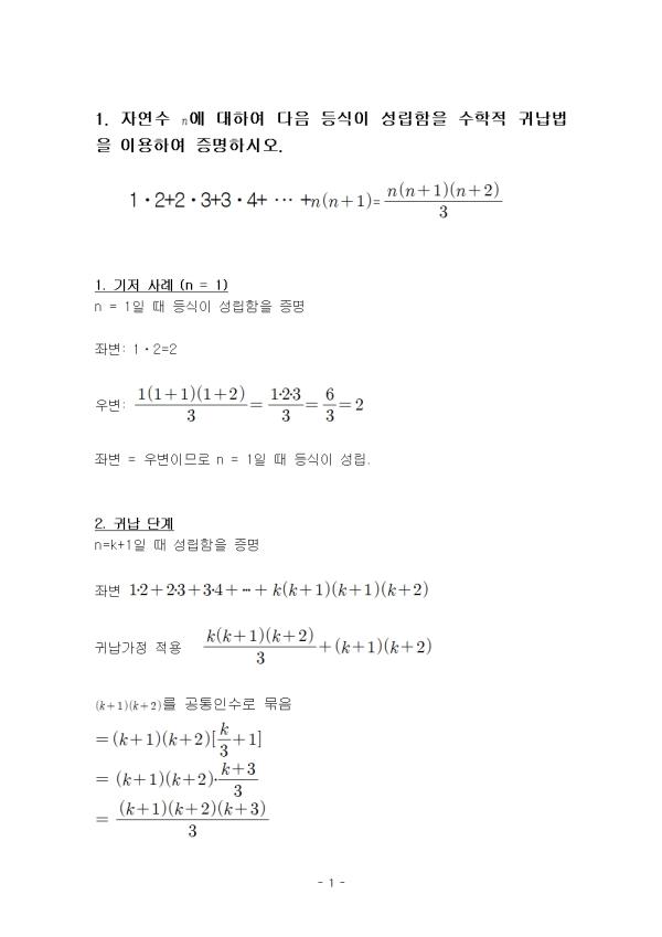 1. ÀÚ¿¬¼ö ¿¡ ´ëÇÏ¿© ´ÙÀ½ µî½ÄÀÌ ¼º¸³ÇÔÀ» ¼öÇÐÀû ±Í³³¹ýÀ» ÀÌ¿ëÇÏ¿© Áõ¸íÇϽÿÀ.