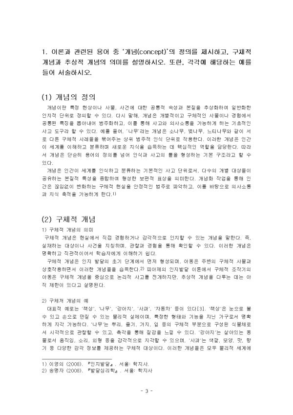 1. À̷аú °ü·ÃµÈ ¿ë¾î Áß ¡®°³³ä(concept)¡¯ÀÇ Á¤ÀǸ¦ Á¦½ÃÇϰí, ±¸Ã¼Àû °³³ä°ú Ãß»óÀû °³³äÀÇ Àǹ̸¦ ¼³¸íÇϽÿÀ. ¶ÇÇÑ, °¢°¢¿¡ ÇØ´çÇÏ´Â ¿¹¸¦ µé¾î ¼¼úÇϽÿÀ.