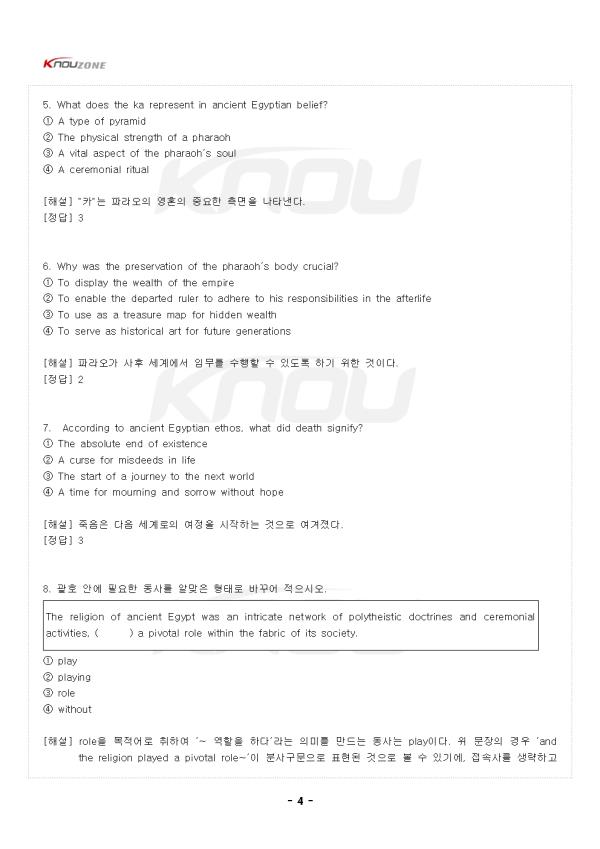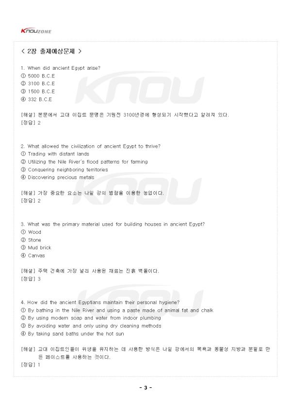1. Ancient Egypt was an impressive civilization that arose around 3100 B.C.E. It remained a major power in North Africa and nearby regions until the Macedonians took over in 332 B.C.E. The civilization thrived mostly because it made the most of the Nile River¡¯s flood patterns for farming. The predictable flooding and con-trolled irrigation of the fertile valley produced surplus crops, which allowed the population to grow and society to become more complex. By successfully man-aging their environment and resources, the Egyptians established a culture rich in art, knowledge, and architecture that would influence the world for centuries to come. °í´ë ÀÌÁýÆ®´Â ±â¿øÀü 3100³â°æ¿¡ ÀÏ¾î³ ÀλóÀûÀÎ ¹®¸íÀ̾ú´Ù. ±â¿øÀü 332³â¿¡ ¸¶Äɵµ´Ï¾ÆÀεéÀÌ Àå¾ÇÇÒ ¶§±îÁö °í´ë ÀÌÁýÆ®´Â ºÏ¾ÆÇÁ¸®Ä«¿Í Àα٠Áö¿ªÀÇ ÁÖ¿ä °±¹À¸·Î ³²¾Æ ÀÖ¾ú´Ù. ÀÌ ¹®¸íÀº ÁÖ·Î ³ªÀϰÀÇ È«¼ö ÆÐÅÏÀ» ³ó¾÷¿¡ ÃÖ´ëÇÑ È°¿ëÇ߱⠶§¹®¿¡ ¹ø¼ºÇß´Ù. ¿¹Ãø °¡´ÉÇÑ È«¼ö¿Í ºñ¿ÁÇÑ °è°îÀÇ ÅëÁ¦µÈ °ü°³·Î ÀÎÇØ À׿© ³óÀÛ¹°ÀÌ »ý»êµÇ¾ú°í, ÀÌ·Î ÀÎÇØ Àα¸°¡ Áõ°¡ÇÏ°í »çȸ´Â ´õ¿í º¹ÀâÇØÁú ¼ö ÀÖ¾ú´Ù. ÀÌÁýÆ®ÀεéÀº ȯ°æ°ú ÀÚ¿øÀ» ¼º°øÀûÀ¸·Î °ü¸®ÇÔÀ¸·Î½á ¿¹¼ú, Áö½Ä, ±×¸®°í °ÇÃà¿¡¼ dz¼ºÇÑ ¹®È¸¦ È®¸³ÇßÀ¸¸ç ÀÌ´Â ÀÌÈÄ ¼ö ¼¼±â µ¿¾È ¼¼°è¿¡ ¿µÇâÀ» ¹ÌÄ¡°Ô µÇ¾ú´Ù. - Áß·« - [ 2Àå ÃâÁ¦¿¹»ó¹®Á¦]> ¹®Á¦ 1. ´ÙÀ½ ¹®Àå¿¡¼ (A)¿¡ µé¾î°¥ °¡Àå ÀûÀýÇÑ ´Ü¾î´Â? The civilization thrived mostly because it made the most of the Nile River's flood patterns for farming. The predictable flooding and controlled irrigation of the fertile valley produced surplus crops, which allowed the population to grow and society to become more complex. By successfully (A) their environment and resources, the Egyptians established a culture rich in art, knowledge, and architecture. ¨ç ignoring ¨è managing ¨é destroying ¨ê avoiding <ÇØ¼®> ÀÌ ¹®¸íÀº ÁÖ·Î ³ªÀϰÀÇ È«¼ö ÆÐÅÏÀ» ³ó¾÷¿¡ ÃÖ´ëÇÑ È°¿ëÇ߱⠶§¹®¿¡ ¹ø¼ºÇß´Ù. ¿¹Ãø °¡´ÉÇÑ È«¼ö¿Í ºñ¿ÁÇÑ °è°îÀÇ ÅëÁ¦µÈ °ü°³·Î ÀÎÇØ À׿© ³óÀÛ¹°ÀÌ »ý»êµÇ¾ú°í, ÀÌ·Î ÀÎÇØ Àα¸°¡ Áõ°¡ÇÏ°í »çȸ´Â ´õ¿í º¹ÀâÇØÁú ¼ö ÀÖ¾ú´Ù. ÀÌÁýÆ®ÀεéÀº ȯ°æ°ú ÀÚ¿øÀ» ¼º°øÀûÀ¸·Î (A)ÇÔÀ¸·Î½á ¿¹¼ú, Áö½Ä, ±×¸®°í °ÇÃà¿¡¼ dz¼ºÇÑ ¹®È¸¦ È®¸³Çß´Ù. <Á¤´ä> ¨è <ÇØ¼³> managingÀº '°ü¸®ÇÏ´Ù'¶ó´Â Àǹ̷Î, ÀÌÁýÆ®ÀεéÀÌ È¯°æ°ú ÀÚ¿øÀ» È¿°úÀûÀ¸·Î °ü¸®ÇÏ¿© ¹ø¿µÇÏ´Â ¹®¸íÀ» ÀÌ·èÇß´Ù´Â ³»¿ëÀÌ´Ù. ³ªÀϰÀÇ È«¼ö¸¦ ¿¹ÃøÇÏ°í °ü°³ ½Ã½ºÅÛÀ» ÅëÁ¦ÇÏ¿© ³ó¾÷ »ý»ê¼ºÀ» ³ôÀÎ °ÍÀÌ ´ëÇ¥ÀûÀÎ ¿¹ÀÌ´Ù. ignoringÀº '¹«½ÃÇÏ´Ù', destroyingÀº 'ÆÄ±«ÇÏ´Ù', avoidingÀº 'ÇÇÇÏ´Ù'·Î ¹®¸Æ»ó ÀûÀýÇÏÁö ¾Ê´Ù. °í´ë ÀÌÁýÆ® ¹®¸íÀÌ ¿À·§µ¿¾È ¹ø¼ºÇÒ ¼ö ÀÖ¾ú´ø °ÍÀº ÀÚ¿¬È¯°æÀ» Àß °ü¸®Çϰí Ȱ¿ëÇ߱⠶§¹®À̶ó´Â Á¡¿¡¼ managingÀÌ Á¤´äÀÌ´Ù. - Áß·« - |