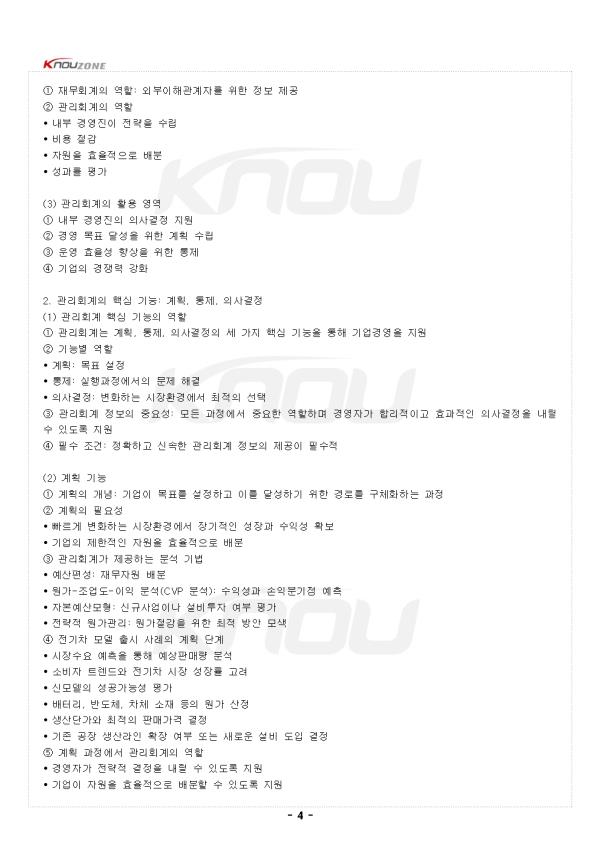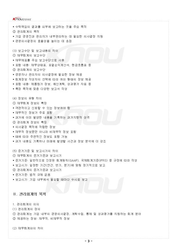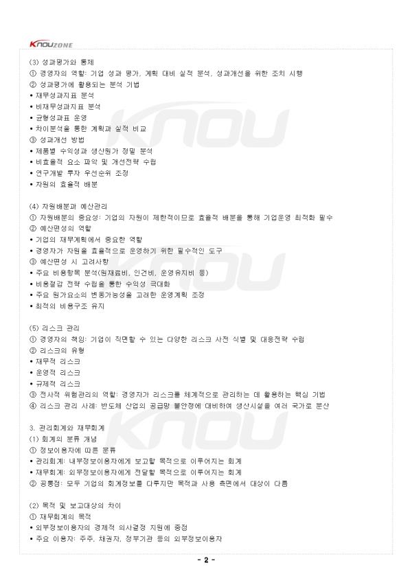 1. ¿ÜºÎÁ¤º¸ÀÌ¿ëÀÚ¿Í ³»ºÎÁ¤º¸ÀÌ¿ëÀÚ (1) ±â¾÷ÀÇ Á¤º¸ÀÌ¿ëÀÚ °³³ä ¨ç Á¤º¸ÀÌ¿ëÀÚ¶õ ±â¾÷ÀÇ À繫Á¤º¸¿Í °æ¿µ¼º°ú¿¡ °ü½ÉÀ» °¡Áö¸ç À̸¦ ÀÇ»ç°áÁ¤¿¡ Ȱ¿ëÇÏ´Â °³ÀÎ ¶Ç´Â Á¶Á÷ ¨è ±â¾÷ÀÇ Á¤º¸ÀÌ¿ëÀÚ´Â ¿ÜºÎÁ¤º¸ÀÌ¿ëÀÚ¿Í ³»ºÎÁ¤º¸ÀÌ¿ëÀÚ·Î ±¸ºÐ (2) ¿ÜºÎÁ¤º¸ÀÌ¿ëÀÚ ¨ç Á¤ÀÇ: ±â¾÷ ¿ÜºÎ¿¡ À§Ä¡ÇÏ¸ç ±â¾÷ÀÇ À繫Á¤º¸¿Í °æ¿µ¼º°ú¿¡ °ü½ÉÀ» °®´Â Áý´Ü ¨è ÁÖ¿ä ¿ÜºÎÁ¤º¸ÀÌ¿ëÀÚÀÇ Æ¯Â¡ • ÁÖÁÖ: ÅõÀÚ°áÁ¤À» À§ÇØ ±â¾÷ÀÇ ¼öÀͼº°ú ¼ºÀ强 Á¤º¸ Ȱ¿ë • ä±ÇÀÚ: ½Å¿ë°áÁ¤À» À§ÇØ ±â¾÷ÀÇ À繫¾ÈÁ¤¼º Æò°¡ • ¼¼¹«´ç±¹: °ú¼¼°áÁ¤À» À§ÇØ ±â¾÷ÀÇ ¼Òµæ°ú ³³¼¼¾× ÆÄ¾Ç • ±ÔÁ¦±â°ü: ±ÔÁ¦°áÁ¤À» À§ÇØ ±â¾÷ÀÇ Áؼö»çÇ× È®ÀÎ • Á¤ºÎ: °æÁ¦Á¤Ã¥ °áÁ¤À» À§ÇØ ±â¾÷ °æÁ¦ ÇöȲ ºÐ¼® ¨é °øÅëÁ¡: À繫ȸ°è¸¦ ÅëÇØ Á¦°øµÇ´Â Á¤º¸¸¦ ÁַΠȰ¿ë (3) ³»ºÎÁ¤º¸ÀÌ¿ëÀÚ ¨ç Á¤ÀÇ: ±â¾÷ ³»ºÎ¿¡¼ °æ¿µÈ°µ¿À» ¼öÇàÇϸç Á÷Á¢ÀûÀÎ ÀÇ»ç°áÁ¤¿¡ Âü¿©Çϰųª ±â¾÷¿î¿µ¿¡ ±â¿©ÇÏ´Â ÁÖü ¨è ÁÖ¿ä ³»ºÎÁ¤º¸ÀÌ¿ëÀÚ • °æ¿µÀÚ: ±â¾÷¿î¿µÀ» ÃѰýÇÏ¸ç °æ¿µ°èȹ ¼ö¸³, À繫 ¹× ºñÀ繫 Á¤º¸¸¦ ¹ÙÅÁÀ¸·Î Àü·«Àû ÀÇ»ç°áÁ¤ • Á¾¾÷¿ø: ±â¾÷ÀÇ »ý»ê¼º°ú ¼º°ú¿¡ Á÷Á¢ÀûÀ¸·Î ±â¿©ÇÏ¸ç º¸»ó°ú ±Ù¹«È¯°æ¿¡ ¿µÇâÀ» ¹ÞÀ½ ¨é Ư¡: ´õ »ó¼¼Çϰí Áï°¢ÀûÀÎ °æ¿µ ÀÇ»ç°áÁ¤À» À§ÇØ °ü¸®È¸°è¸¦ Ȱ¿ë 2. °æ¿µÀÚÀÇ ¿ªÇÒ°ú Ã¥ÀÓ (1) Àü·«¼ö¸³°ú °æ¿µ°èȹ ¨ç °æ¿µÀÚÀÇ ¿ªÇÒ: ±â¾÷ÀÇ ºñÀü°ú ¸ñÇ¥ ¼³Á¤, À̸¦ ´Þ¼ºÇϱâ À§ÇÑ Àü·« ¼ö¸³ ¨è °æ¿µÀü·«ÀÇ ÁÖ¿ä ¿ä¼Ò • ½ÃÀåÁ¡À¯À² È®´ë • ¼öÀͼº Áõ´ë • ¿ø°¡Àý°¨ • ¿¬±¸°³¹ß ÅõÀÚ ¨é ȸ°èÁ¤º¸ÀÇ ¿ªÇÒ: °¢ »ç¾÷ºÎÀÇ ¿ø°¡¿Í ¼öÀͼºÀ» ºÐ¼®ÇÏ¿© ÃÖÀûÀÇ Àü·« ¹æÇâ ¼³Á¤¿¡ Áß¿äÇÑ ¿ªÇÒ (2) ÀÇ»ç°áÁ¤ Áö¿ø ¨ç ÀÇ»ç°áÁ¤ÀÇ ¹üÀ§: ÀÏ»óÀûÀÎ ¿î¿µ °áÁ¤ºÎÅÍ ´ë±Ô¸ð ÅõÀÚ, ½ÅÁ¦Ç° °³¹ß, ÀμöÇÕº´ µî Áß¿äÇÑ »ç¾È ¨è ÀÇ»ç°áÁ¤ °úÁ¤¿¡¼ÀÇ È¸°èÁ¤º¸ Ȱ¿ë • ½Å¼ÓÇϰí Á¤È®ÇÑ ÆÇ´Ü µµÃâ • Áö¿ªÀÇ ¼Òºñ ÆÐÅÏ, ¿ø°¡±¸Á¶, ¿¹»ó ¼öÀͼº öÀúÈ÷ ºÐ¼® • ¿ø°¡ºÐ¼®, ¼ÕÀͺм®, Çö±ÝÈ帧 ¿¹Ãø µî ´Ù¾çÇÑ È¸°è±â¹ý Ȱ¿ë ¨é »ç·Ê: ½ºÅ¸¹÷½º´Â »õ·Î¿î ½ÃÀå ÁøÃâ ½Ã ÇØ´ç Áö¿ªÀÇ ¼Òºñ ÆÐÅÏ ¹× ¿ø°¡±¸Á¶ öÀúÈ÷ ºÐ¼® ÈÄ ÃÖÀû °áÁ¤ (3) ¼º°úÆò°¡¿Í ÅëÁ¦ ¨ç °æ¿µÀÚÀÇ ¿ªÇÒ: ±â¾÷ ¼º°ú Æò°¡, °èȹ ´ëºñ ½ÇÀû ºÐ¼®, ¼º°ú°³¼±À» À§ÇÑ Á¶Ä¡ ½ÃÇà ¨è ¼º°úÆò°¡¿¡ Ȱ¿ëµÇ´Â ºÐ¼® ±â¹ý • À繫¼º°úÁöÇ¥ ºÐ¼® • ºñÀ繫¼º°úÁöÇ¥ ºÐ¼® • ±ÕÇü¼º°úÇ¥ ¿î¿µ • Â÷À̺м®À» ÅëÇÑ °èȹ°ú ½ÇÀû ºñ±³ ¨é ¼º°ú°³¼± ¹æ¹ý • Á¦Ç°º° ¼öÀͼº°ú »ý»ê¿ø°¡ Á¤¹Ð ºÐ¼® • ºñÈ¿À²Àû ¿ä¼Ò ÆÄ¾Ç ¹× °³¼±Àü·« ¼ö¸³ • ¿¬±¸°³¹ß ÅõÀÚ ¿ì¼±¼øÀ§ Á¶Á¤ • ÀÚ¿øÀÇ È¿À²Àû ¹èºÐ (4) ÀÚ¿ø¹èºÐ°ú ¿¹»ê°ü¸® ¨ç ÀÚ¿ø¹èºÐÀÇ Á߿伺: ±â¾÷ÀÇ ÀÚ¿øÀÌ Á¦ÇÑÀûÀ̹ǷΠȿÀ²Àû ¹èºÐÀ» ÅëÇØ ±â¾÷¿î¿µ ÃÖÀûÈ Çʼö ¨è ¿¹»êÆí¼ºÀÇ ¿ªÇÒ • ±â¾÷ÀÇ À繫°èȹ¿¡¼ Áß¿äÇÑ ¿ªÇÒ • °æ¿µÀÚ°¡ ÀÚ¿øÀ» È¿À²ÀûÀ¸·Î ¿î¿µÇϱâ À§ÇÑ ÇʼöÀûÀÎ µµ±¸ ¨é ¿¹»êÆí¼º ½Ã °í·Á»çÇ× • ÁÖ¿ä ºñ¿ëÇ׸ñ ºÐ¼®(¿øÀç·áºñ, ÀΰǺñ, ¿î¿µÀ¯Áöºñ µî) • ºñ¿ëÀý°¨ Àü·« ¼ö¸³À» ÅëÇÑ ¼öÀͼº ±Ø´ëÈ • ÁÖ¿ä ¿ø°¡¿ä¼ÒÀÇ º¯µ¿°¡´É¼ºÀ» °í·ÁÇÑ ¿î¿µ°èȹ Á¶Á¤ • ÃÖÀûÀÇ ºñ¿ë±¸Á¶ À¯Áö (5) ¸®½ºÅ© °ü¸® ¨ç °æ¿µÀÚÀÇ Ã¥ÀÓ: ±â¾÷ÀÌ Á÷¸éÇÒ ¼ö ÀÖ´Â ´Ù¾çÇÑ ¸®½ºÅ© »çÀü ½Äº° ¹× ´ëÀÀÀü·« ¼ö¸³ ¨è ¸®½ºÅ©ÀÇ À¯Çü • À繫Àû ¸®½ºÅ© • ¿î¿µÀû ¸®½ºÅ© • ±ÔÁ¦Àû ¸®½ºÅ© ¨é Àü»çÀû À§Çè°ü¸®ÀÇ ¿ªÇÒ: °æ¿µÀÚ°¡ ¸®½ºÅ©¸¦ ü°èÀûÀ¸·Î °ü¸®ÇÏ´Â µ¥ Ȱ¿ëÇÏ´Â ÇÙ½É ±â¹ý ¨ê ¸®½ºÅ© °ü¸® »ç·Ê: ¹ÝµµÃ¼ »ê¾÷ÀÇ °ø±Þ¸Á ºÒ¾ÈÁ¤¿¡ ´ëºñÇÏ¿© »ý»ê½Ã¼³À» ¿©·¯ ±¹°¡·Î ºÐ»ê 3. °ü¸®È¸°è¿Í À繫ȸ°è (1) ȸ°èÀÇ ºÐ·ù °³³ä ¨ç Á¤º¸ÀÌ¿ëÀÚ¿¡ µû¸¥ ºÐ·ù • °ü¸®È¸°è: ³»ºÎÁ¤º¸ÀÌ¿ëÀÚ¿¡°Ô º¸°íÇÒ ¸ñÀûÀ¸·Î ÀÌ·ç¾îÁö´Â ȸ°è • À繫ȸ°è: ¿ÜºÎÁ¤º¸ÀÌ¿ëÀÚ¿¡°Ô Àü´ÞÇÒ ¸ñÀûÀ¸·Î ÀÌ·ç¾îÁö´Â ȸ°è ¨è °øÅëÁ¡: ¸ðµÎ ±â¾÷ÀÇ È¸°èÁ¤º¸¸¦ ´Ù·çÁö¸¸ ¸ñÀû°ú »ç¿ë Ãø¸é¿¡¼ ´ë»óÀÌ ´Ù¸§ - Áß·« - |