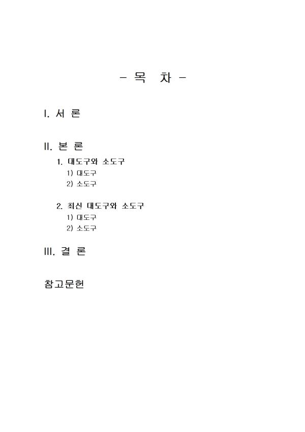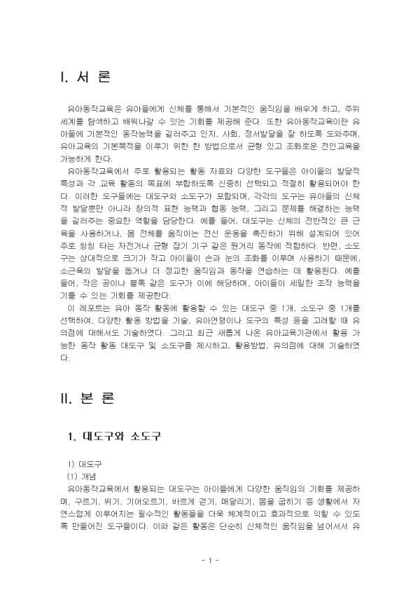¡Ø ±³Àç¿¡ Á¦½ÃµÈ Ȱµ¿¹æ¹ý ¿Ü¿¡ Àç¹ÌÀִ Ȱµ¿ ¾ÆÀ̵ð¾î Ãß°¡ ±â¼ú ÇÊ¿ä 2. ÃÖ±Ù »õ·Ó°Ô ³ª¿Â À¯¾Æ±³À°±â°ü¿¡¼ Ȱ¿ë °¡´ÉÇÑ µ¿ÀÛ È°µ¿ ´ëµµ±¸ ¹× ¼Òµµ±¸¸¦ Á¦½ÃÇϰí, Ȱ¿ë¹æ¹ý, À¯ÀÇÁ¡¿¡ ´ëÇØ ±â¼úÇϽÿÀ. ¡Ø ´ëµµ±¸¿Í ¼Òµµ±¸ ±¸ºÐ¾øÀÌ ÃÑ 2°³ Á¦½Ã, ¼³¸íÀ» µ½±â À§ÇØ ÇÊ¿ä½Ã »çÁø ÷ºÎ °¡´É - ¸ñ Â÷ - I. ¼ ·Ð II. º» ·Ð 1. ´ëµµ±¸¿Í ¼Òµµ±¸ 1) ´ëµµ±¸ 2) ¼Òµµ±¸ 2. ÃֽŠ´ëµµ±¸¿Í ¼Òµµ±¸ 1) ´ëµµ±¸ 2) ¼Òµµ±¸ III. °á ·Ð Âü°í¹®Çå ** ÇÔ²² Á¦°øµÇ´Â Âü°íÀÚ·á ÇÑ±ÛÆÄÀÏ ** 1. ´ëµµ±¸¿Í ¼Òµµ±¸.hwp 2. ´ëµµ±¸¿Í ¼Òµµ±¸2.hwp 3. ´ëµµ±¸¿Í ¼Òµµ±¸3.hwp 4. ÃֽŠ´ëµµ±¸¿Í ¼Òµµ±¸.hwp 5. ÃֽŠ´ëµµ±¸¿Í ¼Òµµ±¸2.hwp 6. ÃֽŠ´ëµµ±¸¿Í ¼Òµµ±¸3.hwp 7. ¼·Ð ÀÛ¼º½Ã ÂüÁ¶.hwp 8. °á·Ð ÀÛ¼º½Ã ÂüÁ¶.hwp 9. ¼·Ð ÀÛ¼º½Ã ÂüÁ¶2.hwp 10. °á·Ð ÀÛ¼º½Ã ÂüÁ¶2.hwp ¢ºÀÚ·á³»¿ë ¹Ì¸®º¸±â