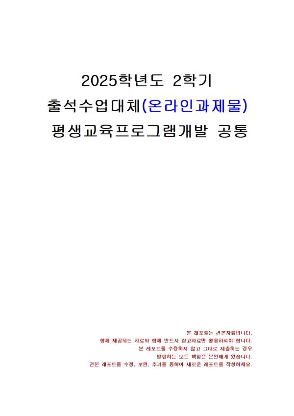 | 2025³â 2ÇÐ±â Æò»ý±³À°ÇÁ·Î±×·¥°³¹ß Ãâ¼®¼ö¾÷´ëü½ÃÇè °úÁ¦¹°(¼ºÀÎÁø·Î°³¹ßÀÇ ¹®Á¦Á¡) |