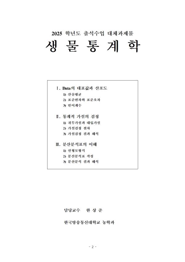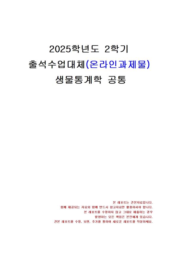 | 2025³â 2Çб⠻ý¹°Åë°èÇÐ Ãâ¼®¼ö¾÷´ëü½ÃÇè °úÁ¦¹°(ÁÖ°ü½Ä ¹®Á¦) |