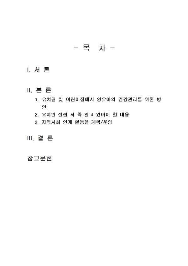 2. º»ÀÎÀÌ À¯Ä¡¿øÀ» ¼³¸³ÇÑ´Ù°í ÇßÀ» ¶§ ²À ¾Ë°í ÀÖ¾î¾ß ÇÒ ³»¿ë¿¡ ´ëÇØ ¿ä¾à, ±â¼úÇϽÿÀ. 3. Áö¿ª»çȸ ¿¬°è Ȱµ¿À» °èȹÇÏ°í ¿î¿µÇÒ ¶§ °í·Á»çÇ×À» Á¦½ÃÇϰí, ÇöÀç ÀÚ½ÅÀÌ °ÅÁÖÇÏ´Â Áö¿ªÀÇ À¯Ä¡¿ø¿¡¼ ¿ì¸®³ª¶ó¸¦ ±³À°ÁÖÁ¦·Î ÁøÇàÇϰí ÀÖÀ» ¶§ Áö¿ª»çȸ ¿¬°èȰµ¿À» ÇÑ´Ù°í °¡Á¤ÇÏ¿´À» °æ¿ì, Áö¿ª»çȸ ¿¬°èȰµ¿ÀÇ ¿¹½Ã¸¦ Áö¿ª ³» ±â°ü ¿¬°è 1°³, Áö¿ª °ø°£ Ȱ¿ë 1°³, Áö¿ª ÁֹΠ¿¬°è Ȱµ¿ 1°³¾¿ °£·«È÷ ±â¼úÇϽÿÀ. - ¸ñ Â÷ - I. ¼ ·Ð II. º» ·Ð 1. À¯Ä¡¿ø ¹× ¾î¸°ÀÌÁý¿¡¼ ¿µÀ¯¾ÆÀÇ °Ç°°ü¸®¸¦ À§ÇÑ ¹æ¾È 2. À¯Ä¡¿ø ¼³¸³ ½Ã ²À ¾Ë°í ÀÖ¾î¾ß ÇÒ ³»¿ë 3. Áö¿ª»çȸ ¿¬°è Ȱµ¿À» °èȹ/¿î¿µ III. °á ·Ð Âü°í¹®Çå ** ÇÔ²² Á¦°øµÇ´Â Âü°íÀÚ·á ÇÑ±ÛÆÄÀÏ ** 1. À¯Ä¡¿ø ¹× ¾î¸°ÀÌÁý¿¡¼ ¿µÀ¯¾ÆÀÇ °Ç°°ü¸®¸¦ À§ÇÑ ¹æ¾È.hwp 2. À¯Ä¡¿ø ¹× ¾î¸°ÀÌÁý¿¡¼ ¿µÀ¯¾ÆÀÇ °Ç°°ü¸®¸¦ À§ÇÑ ¹æ¾È2.hwp 3. À¯Ä¡¿ø ¼³¸³ ½Ã ²À ¾Ë°í ÀÖ¾î¾ß ÇÒ ³»¿ë.hwp 4. À¯Ä¡¿ø ¼³¸³ ½Ã ²À ¾Ë°í ÀÖ¾î¾ß ÇÒ ³»¿ë2.hwp 5. Áö¿ª»çȸ ¿¬°è Ȱµ¿À» °èȹÇÏ°í ¿î¿µÇÒ ¶§ °í·Á»çÇ×.hwp 6. Áö¿ª»çȸ ¿¬°è Ȱµ¿À» °èȹÇÏ°í ¿î¿µÇÒ ¶§ °í·Á»çÇ×2.hwp 7. Áö¿ª»çȸ ¿¬°èȰµ¿ÀÇ ¿¹½Ã.hwp 8. Áö¿ª»çȸ ¿¬°èȰµ¿ÀÇ ¿¹½Ã2.hwp ¢ºÀÚ·á³»¿ë ¹Ì¸®º¸±â