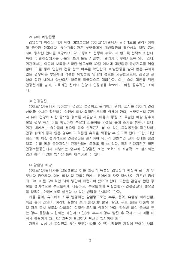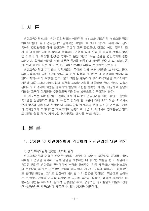 1. À¯Ä¡¿ø ¹× ¾î¸°ÀÌÁý¿¡¼ ¿µÀ¯¾ÆÀÇ °Ç°°ü¸®¸¦ À§ÇÑ ¹æ¾È¿¡ ´ëÇØ ±â¼úÇϽÿÀ.