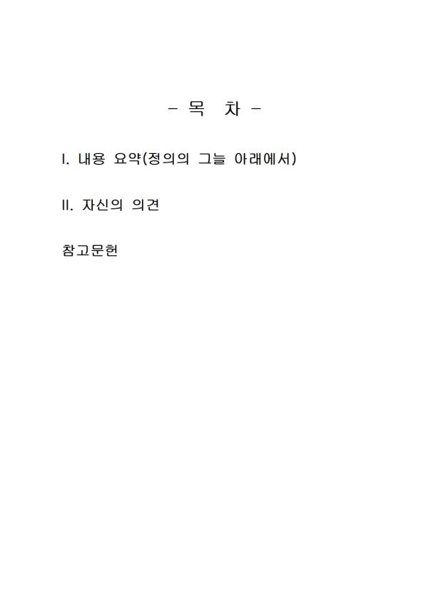 īƮ¸®³ª Æ÷·¹½ºÅÍ, ¡ºÁ¤ÀÇÀÇ ±×´Ã ¾Æ·¡¿¡¼¡» (Èĸ¶´ÏŸ½º, 2025) - ¸ñ Â÷ - I. ³»¿ë ¿ä¾à(Á¤ÀÇÀÇ ±×´Ã ¾Æ·¡¿¡¼) II. ÀÚ½ÅÀÇ ÀÇ°ß Âü°í¹®Çå ** ÇÔ²² Á¦°øµÇ´Â Âü°íÀÚ·á ÇÑ±ÛÆÄÀÏ ** 1. ÀÚ½ÅÀÇ Àǰß.hwp 2. ÀÚ½ÅÀÇ Àǰß2.hwp 3. ÀÚ½ÅÀÇ Àǰß3.hwp 4. ÀÚ½ÅÀÇ Àǰß4.hwp 5. Èï¹Ì·Ó°Ô »ý°¢µÇ´Â ³»¿ë.hwp 6. Èï¹Ì·Ó°Ô »ý°¢µÇ´Â ³»¿ë2.hwp 7. Èï¹Ì·Ó°Ô »ý°¢µÇ´Â ³»¿ë3.hwp 8. Èï¹Ì·Ó°Ô »ý°¢µÇ´Â ³»¿ë4.hwp ¢ºÀÚ·á³»¿ë ¹Ì¸®º¸±â