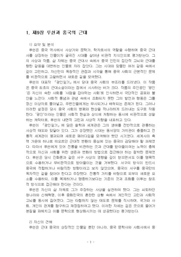 1) ¿ä¾à ¹× ºÐ¼® ·ç½®Àº Áß±¹ ¿ª»ç¿¡¼ »ç»ó°¡¿Í ¹®Çа¡, ÇÐÀڷμÀÇ ¿ªÇÒÀ» ¼öÇàÇϸç Áß±¹ ±Ù´ë»ç¸¦ »ó¡ÇÏ´Â Àι°ÀÌÀÚ ±¼°îÁø ½Ã´ë¸¦ »ì¾Æ³½ ºñÆÇÀû Áö½ÄÀÎÀ¸·Î Æò°¡¹Þ´Â´Ù. ±×ÀÇ »ç»ó°ú ÀÛǰ, »î ÀÚü´Â Áß±¹ ±Ù´ë»ç ¼Ó¿¡¼ Áß±¹ ÀιÎÀÇ Áý´ÜÀû °í³ú¿Í ±Ù´ë¸¦ ÇâÇÑ °¥µîÀ» ´ëº¯ÇÏ´Â Àι°·Î ÀÚ¸® Àâ¾Ò´Ù. ±×´Â ½Ã´ë¿Í ¸Â¹°¸° ¿©·¯ °¥µî ¼Ó¿¡¼ ±íÀÌ °í¹ÎÇϰí, ÀڽŸ¸ÀÇ µ¶Ã¢ÀûÀÎ °üÁ¡°ú ½Ã°¢À» ÅëÇØ Áß±¹ »çȸÀÇ ±Ùº»ÀûÀÎ ¹®Á¦¸¦ ºñÆÇÀûÀ¸·Î °íÂûÇÏ¸é¼ »õ·Î¿î ±æÀ» ¸ð»öÇß´Ù. ·ç½®ÀÇ ´ëÇ¥ÀÛ ¡¸±¤ÀÎÀϱ⡹¿¡¼ ´ç´ë Áß±¹ »çȸÀÇ ºÎÁ¶¸®¸¦ µå·¯³Â´Ù. ÀÌ ÀÛǰÀº Áß±¹ ÃÖÃÊÀÇ ±Ù´ë¼Ò¼³À̶ó´Â Á¡¿¡¼ ½Ã»çÇÏ´Â ¹Ù°¡ Å©´Ù. ÀÛǰÀÇ ÁÖÀΰøÀÎ '±¤ÀÎ'Àº ÀÚ½ÅÀÌ ¼ÓÇÑ »çȸ¸¦ '»ç¶÷À» Àâ¾Æ¸Ô´Â »çȸ'·Î ÀνÄÇÏ¸é¼ ±Ø´ÜÀûÀÎ °øÆ÷¿Í ºÒ¾ÈÀ» ´À³¤´Ù. »çȸÀû Åë³ä°ú °ü³ä ¼Ó¿¡¼ Á¶ÈµÇÁö ¸øÇÑ ±×ÀÇ ¹ß¾ð°ú ÇൿÀº ±×¸¦ Á¤½Å ÀÌ»óÀÚ·Î ¸ô¾Æ³Ö°í, ÁÖº¯Àε鿡°Ô´Â ¹«½ÃµÇ°Å³ª ¹èôµÇ´Â Á¸Àç°¡ µÈ´Ù. ±×·¯³ª ÀÌ·¯ÇÑ ¼³Á¤Àº ´ç½Ã Áß±¹ »çȸÀÇ º´Æó¿Í Çö»óÀ» Àû³ª¶óÇÏ°Ô µå·¯³»´Â µµ±¸·Î ÀÛµ¿ÇÑ´Ù. ¡®±¤ÀΡ¯À̶ó´Â Àι°Àº »çȸÀû Çö½Ç°ú »ó½Ä¿¡ ÀúÇ×ÇÏ´Â µ¿½Ã¿¡ ºñÆÇÀûÀ¸·Î ¼ºÂûÇϴ ij¸¯ÅÍ·Î, ·ç½®ÀÇ ³»¸éÀû °í¹Î°ú »ç»óÀû ÁöÇâÀ» ³»Æ÷Çϰí ÀÖ´Ù. ·ç½®ÀÌ ¡¸±¤ÀÎÀϱ⡹¿¡ ´ãÀº öÇаú ¼¼°è°üÀº ±×ÀÇ »ý¾Ö¸¦ Àü¹ÝÀûÀ¸·Î °üÅëÇÏ´Â »ç»óÀû ŵµ¿Í ¸Â´ê¾Æ ÀÖ´Ù. ±×°¡ ¼ºÀåÇß´ø ½Ã´ë´Â µ¿¼¾çÀÇ °¡Ä¡°üÀÌ Ãæµ¹Çϰí ÀüÅëÀû ¼¼°è°üÀÌ ºØ±«µÇ¸ç »õ·Î¿î ÆÐ·¯´ÙÀÓÀ» ¸ð»öÇØ¾ß Çß´ø ½Ã±â¿´´Ù. ¼¼°è»çÀÇ Ãà·Â °¡¿îµ¥ Çϳª·Î ¶°¿À¸£´ø ±Ù´ëÀû º¯È¯ÀÇ Á߽ɿ¡ ÀÖ´Â Áß±¹ÀÌ °¨´çÇØ¾ß ÇÒ °úÁ¦¿´´Ù. µû¶ó¼ ·ç½®¿¡°Ô ÀÖ¾î ÀüÅëÀ» ºñÆÇÇÏ´Â °Í°ú ±Ù´ë¸¦ ¹Þ¾ÆµéÀÌ·Á´Â ³ë·ÂÀÌ ÃÑüÀûÀ¸·Î ÀڽŰú »çȸ¸¦ À§ÇÑ »ýÁ¸°ú º¯ÈÀÇ ¹æ¹ýÀ¸·Î Á¢±ÙÇØ¾ß ÇÏ´Â Àý¹ÚÇÑ ¹®Á¦¿´´Ù. ·ç½®Àº ´ç½Ã ÁøÈ·Ð°ú °°Àº ¼±¸ »ç»óÀÇ ¿µÇâÀ» ±íÀÌ ¹ÞÀ¸¸é¼µµ À̸¦ ¸Í¸ñÀûÀ¸·Î ¼ö¿ëÇϰųª ¹«ºñÆÇÀûÀ¸·Î ¹Þ¾ÆµéÀÌ´Â °ÍÀ» °ÅºÎÇß´Ù. ¼±¸ÀÇ ¹æ½ÄÀÌ ¹Ýµå½Ã Áß±¹¿¡ ÀûÇÕÇϰųª ¹Ù¶÷Á÷ÇÑ ¹æÇâÀ̶ó°í º¸Áö ¾Ê¾ÒÀ¸¸ç, Áß±¹ÀÌ ¼±¸¸¦ Áß±¹¸¸ÀÇ µ¶ÀÚÀûÀÎ ±æÀ» ã¾Æ¾ß ÇÑ´Ù°í ÁÖÀåÇß´Ù. ÀüÅëÀû °¡Ä¡¸¦ ¹ÙÅÁÀ¸·Î ¿ÜºÎÀÇ »õ·Î¿î ¿ä¼Ò¸¦ ¼ö¿ëÇϵÇ, À̸¦ º¹Á¦Çϰųª ¸ÍÁ¾Çϱ⺸´Ù´Â ±âÁ¸ÀÇ °Í°ú Á¶È¸¦ ÀÌ·ç´Â âÁ¶Àû ¹æ½ÄÀ¸·Î Á¢±ÙÇØ¾ß ÇÑ´Ù´Â °ÍÀÌ´Ù. ·ç½®Àº ÀÚ½ÅÀÇ »î ÀÚü·Î ±×°¡ ÁÖÀåÇÏ´Â »ç»óÀ» ½ÇõÇÏ·Á Çß´Ù. ±×´Â ¼èÅðÇÏ´ø û³ª¶ó¿Í ½ÅÇØÇõ¸í, ÀÌÈÄ Áßȹα¹ÀÇ È¥¶õÇÑ »óȲ ¼Ó¿¡¼ °³ÀÎÀûÀÎ °í¹Î°ú »çȸÀû °í³ú¸¦ µ¿½Ã¿¡ Áû¾îÁ³´Ù. ±×´Â ŸÇùÇÏÁö ¾Ê´Â ŵµ·Î ¹®Á¦¸¦ Á÷½ÃÇϸç, ±¹°¡¿Í »çȸ, °³ÀÎÀÇ °ü°è¸¦ ޱ¸Çϰí ÀçÁ¤¸³ÇÏ·Á°í Çß´Ù. ÀÌ·¯ÇÑ ÀÚ¼¼´Â ±íÀº °÷À¸·Î µé¾î°¡ º»ÁúÀ» ÆÄÇìÄ¡°í À̸¦ ¹®ÇÐÀ¸·Î Çü»óȽÃŰ´Â µ¥ ¼º°øÇß´Ù´Â Æò°¡¹Þ´Â´Ù. 2) ÀÚ½ÅÀÇ °ßÇØ ·ç½®Àº ±Ù´ë Áß±¹ÀÇ »ó¡ÀûÀÎ Àι°ÀÏ »Ó¸¸ ¾Æ´Ï¶ó, Áß±¹ ¹®Çлç¿Í »çȸ»ç¿¡¼ Áß¿äÇÑ À§Ä¡¸¦ Â÷ÁöÇÏ´Â Áö½ÄÀÎÀ̾ú´Ù. ·ç½®Àº ¼±¸ ¹®¸íÀÌ Áß±¹¿¡ µé¾î¿À¸é¼ Á¦±âµÈ º¯ÈÀÇ °¡´É¼ºÀ» ޱ¸Çß´Ù. ¼±¸ ¹®¸íÀ» Àý´ëÀûÀ¸·Î Âù¾çÇϰųª, ¹«Á¶°Ç µû¶ó¾ß ÇÑ´Ù´Â ÀÔÀåÀ» ÃëÇÏÁö ¾Ê¾Ò´Ù. ¼±¸ ¹®¸í ¼Ó¿¡ ³»ÀçµÈ Á¦±¹ÁÖÀÇÀû ¼Ó¼º°ú »çȸÀû ¸ð¼øÀ» ³¯Ä«·Ó°Ô ÁöÀûÇϸç, À̸¦ ¹«ºñÆÇÀûÀ¸·Î ¼ö¿ëÇÒ °æ¿ì Áß±¹ »çȸ°¡ ¿ÀÈ÷·Á È¥¶õ¿¡ ºüÁú ¼ö ÀÖÀ½À» °æ°íÇß´Ù. ÀÌ·¯ÇÑ Åµµ´Â ±Ù´ëȰ¡ ¼±¸ ¹®¸íÀ» ¹«ÀÛÁ¤ ¹Þ¾ÆµéÀÌ´Â °ÍÀÌ ¾Æ´Ï¶ó, Æò°¡Çϰí Áß±¹¸¸ÀÇ ±æÀ» ã¾Æ¾ß ÇÑ´Ù´Â »ç»óÀ¸·Î À̾îÁ³´Ù. ·ç½®Àº ÀüÅë°ú ±Ù´ëÀÇ Ãæµ¹ ¼Ó¿¡¼ »õ·Î¿î ¹æÇâÀ» ¸ð»öÇß´Ù. ±×´Â Áß±¹ÀÇ ÀüÅëÀû °¡Ä¡¿Í ±¸Á¶°¡ ³»ºÎÀûÀ¸·Î ³°°í ºñÇÕ¸®ÀûÀÎ Á¡ÀÌ ¸¹¾Æ ±Ùº»ÀûÀÎ º¯È°¡ ÇÊ¿äÇÏ´Ù´Â Á¡À» ÀÚÁÖ °Á¶Çß´Ù. ÇÏÁö¸¸ ±×´Â ÀüÅëÀ» ¿ÏÀüÈ÷ ºÎÁ¤Çϴ ŵµ°¡ ¿ÀÈ÷·Á Á¤Ã¼¼º°ú ³»Àû ¿¬´ëÀÇ »ó½Ç·Î À̾îÁú °ÍÀ» ¿ì·ÁÇß´Ù. ±×´Â °ú°Å¿Í ÇöÀ縦 ºñÆÇÀûÀ¸·Î À籸¼ºÇÏ¸ç ¹Ì·¡¿¡ ´ëÇÑ °¡´É¼ºÀ» ¸ð»öÇÏ´Â °úÁ¤À» ÀÛǰ°ú »ç»ó ¼Ó¿¡ ´ã¾Æ³Â´Ù. À̸¦ ÅëÇØ ÁøÁ¤ÇÑ ±Ù´ëȶõ ±âÁ¸°ú »õ·Î¿î °³³äµéÀÌ ¼·Î ¿µÇâÀ» ÁÖ°í¹ÞÀ¸¸ç âÁ¶ÀûÀ¸·Î °áÇյǴ °úÁ¤À̶ó°í º¸¾Ò´Ù. ±Ù´ëȶó´Â °³³äÀÌ ¿ÜºÎ ¿ä¼ÒÀÇ ¼ö¿ë°ú ±â¼úÀû Çõ½Å¸¸À¸·Î ÀÌ·ç¾îÁö´Â °Í