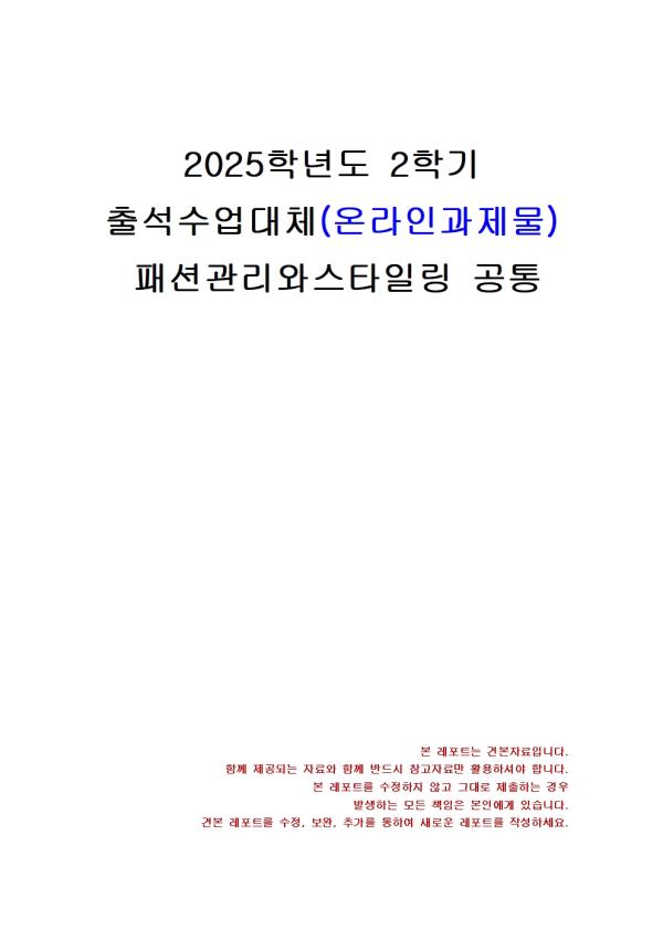 | 2025³â 2ÇÐ±â ÆÐ¼Ç°ü¸®¿Í½ºÅ¸Àϸµ Ãâ¼®¼ö¾÷´ëü½ÃÇè °úÁ¦¹°(ÀǺ¹±âÈ£ ºÐ¼®, ¼¼Å¹°ú °ÇÁ¶) |