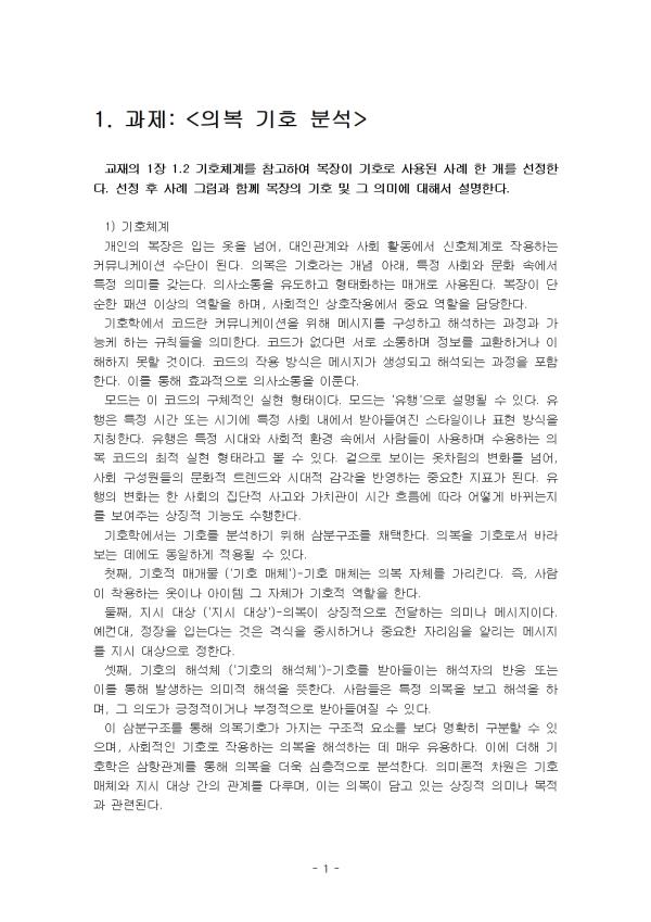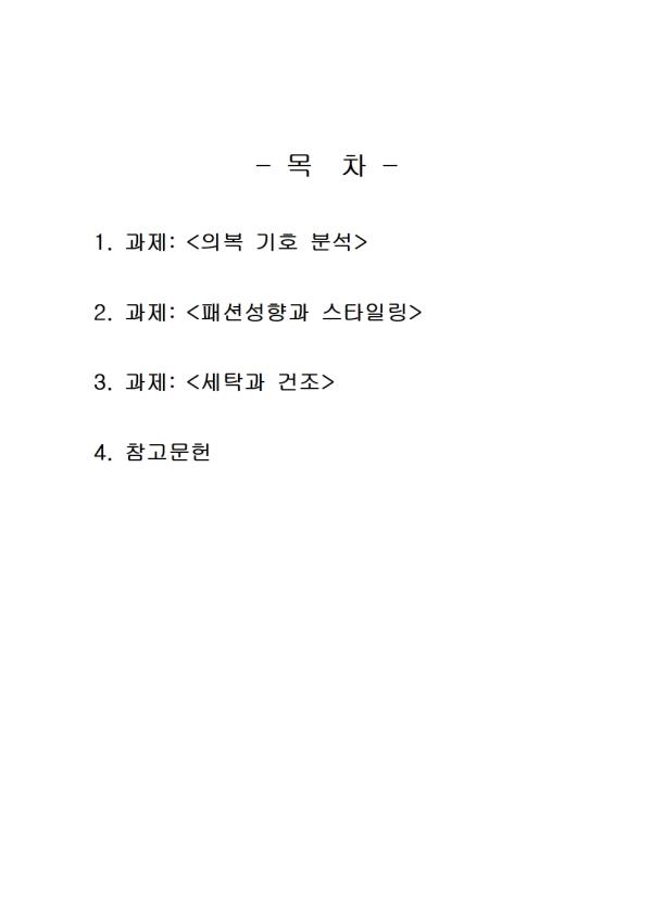 2. ´Ù¼¸ °¡Áö ÆÐ¼Ç ¼ºÇâ Áß ±×¸²¿¡ ³ªÅ¸³ ½ºÅ¸ÀϸµÀÇ ÆÐ¼Ç ¼ºÇâÀÌ ¹«¾ùÀÎÁö ¹àÈ÷°í, ÆÐ¼Ç ¼ºÇâ Ãø¸é¿¡¼ ½ºÅ¸Àϸµ(ÀǺ¹°ú ¾×¼¼¼¸®ÀÇ Á¾·ù, ½Ç·ç¿§, ¼ÒÀç, ¸ÞÀÌÅ©¾÷°ú Çì¾î)À» ºÐ¼®ÇϽÿÀ. 3. ±³Àç 13-14ÀåÀ» Àаí, È¿À²ÀûÀÎ ¼¼Å¹°ú °ÇÁ¶¸¦ À§Çؼ º»ÀÎÀÌ Áöų ¼ö ÀÖ´Â ¼¼Å¹°ú °ÇÁ¶ ¹æ¹ý 4°¡Áö Á¦½ÃÇÏ°í ±× ±Ù°Å¸¦ °¡Áö°í ¼³¸íÇϽÿÀ. - ¸ñ Â÷ - 1. °úÁ¦: <ÀǺ¹ ±âÈ£ ºÐ¼®> 2. °úÁ¦: <ÆÐ¼Ç¼ºÇâ°ú ½ºÅ¸Àϸµ> 3. °úÁ¦: <¼¼Å¹°ú °ÇÁ¶> 4. Âü°í¹®Çå ** ÇÔ²² Á¦°øµÇ´Â Âü°íÀÚ·á ÇÑ±ÛÆÄÀÏ ** 1. »çÁø ¼Ó ½ºÅ¸ÀÏÀÇ ÆÐ¼Ç ¼ºÇâ.hwp 2. »çÁø ¼Ó ½ºÅ¸ÀÏÀÇ ÆÐ¼Ç ¼ºÇâ2.hwp 3. ¼¼Å¹°ú °ÇÁ¶¹æ¹ý 4°¡Áö(1).hwp 4. ¼¼Å¹°ú °ÇÁ¶¹æ¹ý 4°¡Áö(2).hwp 5. ÆÐ¼Ç ¼ºÇâ Ãø¸é¿¡¼ ½ºÅ¸Àϸµ.hwp 6. ÆÐ¼Ç ¼ºÇâ Ãø¸é¿¡¼ ½ºÅ¸Àϸµ2.hwp ¢ºÀÚ·á³»¿ë ¹Ì¸®º¸±â