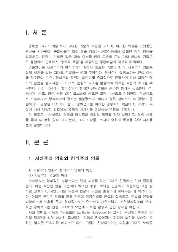 1. »ç½ÇÁÖÀÇ ¿µÈ¿Í Çü½ÄÁÖÀÇ ¿µÈÀÇ Æ¯Â¡À» °¢°¢ ¼³¸íÇϰí, ¿µÈ »ç·Ê¸¦ µé¾î µÎ ¿µÈ ¾ç½ÄÀ» ±¸Ã¼ÀûÀ¸·Î ºñ±³¡¤ºÐ¼®ÇϽÿÀ.