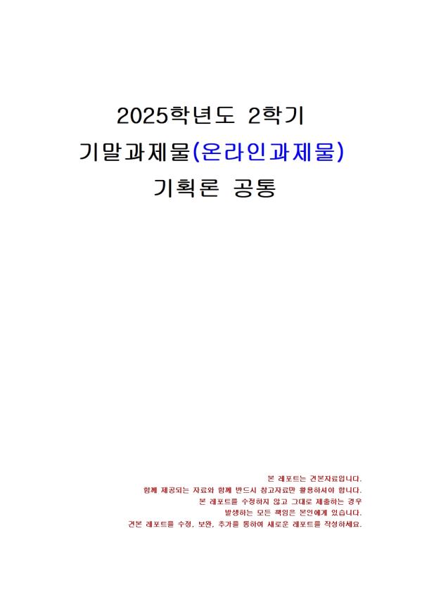 | 2025³â 2Çб⠱âȹ·Ð ±â¸»½ÃÇè °úÁ¦¹°(±âȹ °úÁ¤¿¡ ½Ã¹ÎÀÌ Âü¿©ÇÏ´Â ¹®Á¦) |