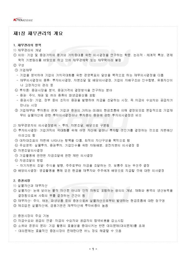 1. À繫°ü¸®ÀÇ ¿µ¿ª 1) À繫°ü¸®ÀÇ °³³ä ¨ç ÀǹÌ: ±â¾÷ ¹× Áõ±Ç°¡Ä¡ÀÇ Æò°¡¿Í °¡Ä¡Áõ´ë¸¦ À§ÇÑ ÀÇ»ç°áÁ¤À» ¿¬±¸ÇÏ´Â Çй®. ³í¸®Àû ․ ü°èÀû Ư¼º. °æÁ¦ÇÐÀû ±âº»¿ø¸®¸¦ ¹ÙÅÁÀ¸·Î Çϰí ÀÖ¾î À繫°æÁ¦ÇÐ ¶Ç´Â À繫ÇÐÀ̶ó ºÒ¸² ¨è ±¸¼º ¨± ±â¾÷À繫 - ±â¾÷À» ºÐ¼®ÇÏ¿© ±â¾÷ÀÇ °¡Ä¡±Ø´ëȸ¦ À§ÇÑ °æ¿µ¸ñÇ¥ÀÇ ´Þ¼ºÀ» ¸ñÀûÀ¸·Î ÇÏ´Â À繫ÀÇ»ç°áÁ¤À» ´Ù·ë - À繫ÀÇ»ç°áÁ¤ÀÇ Á¾·ù: ÅõÀÚÀÇ»ç°áÁ¤, ÀÚº»Á¶´Þ ¹× ¹è´çÀÇ»ç°áÁ¤, ±â¾÷ÀÇ Áö¹è±¸Á¶¿Í ÀμöÇÕº´, À¯µ¿ÀÚ»êÀ̳ª °íÁ¤ÀÚ»êÀÇ °ü¸® µî ¨² ÅõÀÚ·Ð: Áõ±Ç½ÃÀåÀ» ºÐ¼®, Áõ±Ç°¡°ÝÀÇ °áÁ¤¹æ½ÄÀ» ¿¬±¸ÇÏ´Â ºÐ¾ß - Áõ±Ç: ÁÖ½Ä, ä±Ç ¹× ¿©·¯ Á¾·ùÀÇ ÆÄ»ý±ÝÀ¶»óǰ Æ÷ÇÔ - Áõ±Ç½ÃÀå: ±â¾÷, Á¤ºÎ µîÀÇ Á¶Á÷ÀÌ Áõ±ÇÀ» ¹ßÇàÇÏ¿© ÀÚ±ÝÀ» Á¶´ÞÇÏ´Â ½ÃÀå, Áï ÀÚ±ÝÀÇ ¼ö¿äÀÚ¿Í °ø±ÞÀÚ°¡ ¸¸³ª´Â ½ÃÀå ¨é ±â¾÷À繫¿Í ÅõÀÚ·ÐÀÇ °ü°è: ±â¾÷°ú Áõ±ÇÀÇ °¡Ä¡´Â ¹Ì·¡ÀÇ Çö±ÝÈ帧¿¡ ÀÇÇØ °áÁ¤µÇ¹Ç·Î º»ÁúÀûÀ¸·Î ±â¾÷À繫ÀÇ ½Ç¹°Àڻ꿡 °üÇÑ ÅõÀÚÀÇ»ç°áÁ¤À̳ª ÅõÀÚ·ÐÀÇ Áõ±Ç¿¡ °üÇÑ ÅõÀÚÀÇ»ç°áÁ¤Àº ºñ½Á 2) À繫°æ¿µÀÚÀÇ ÀÇ»ç°áÁ¤¹üÀ§ - ÅõÀÚ, ÀÚº»Á¶´Þ, ¹è´çÀ¸·Î ±¸ºÐµÊ ¨ç ÅõÀÚÀÇ»ç°áÁ¤: ±â¾÷°¡Ä¡ÀÇ ±Ø´ëȸ¦ À§ÇØ ¾î¶² Àڻ꿡 ¾ó¸¶³ª ÅõÀÚÇÒ °ÍÀΰ¡¸¦ °áÁ¤ÇÏ´Â °ÍÀ¸·Î ÀÚº»¿¹»êÀ̶ó°íµµ ÇÔ ¨± ´ëÂ÷´ëÁ¶Ç¥ÀÇ Â÷º¯¿¡ ³ªÅ¸³ª´Â Ç׸ñÀ» ´Ù·ë, ÃÖÀûÀÇ Àڻ걸¼ºÀ» ¸ñÀûÀ¸·Î ÇÔ ¨² Áֿ俵¿ª: ½Ç¹°ÅõÀÚ, Áõ±ÇÅõÀÚ, ±â¾÷Àμö¸¦ À§ÇÑ ÀÚ¿ø¹èºÐ, ¿îÀüÀÚº»ÀÇ ÀÇ»ç°áÁ¤ µî ¨è ÀÚº»Á¶´ÞÀÇ»ç°áÁ¤ ¨± ±â¾÷Ȱµ¿¿¡ °ü·ÃµÈ ÀÚ±ÝÁ¶´Þ¿¡ °üÇÑ Á¦¹Ý ÀÇ»ç°áÁ¤ ¨² ÀÚ±ÝÁ¶´ÞÀÇ ¹æ¹ý - ÀÚ±âÀÚº»ÀÇ Á¶´Þ: ÁÖ½ÄÀ» ¹ßÇà, ÁÖÁַκÎÅÍ ÀÚ±ÝÀ» Á¶´ÞÇÏ´Â °Í. º¸ÅëÁÖ ¶Ç´Â ¿ì¼±ÁÖ °áÁ¤ ¨é ¹è´çÀÇ»ç°áÁ¤: ¿µ¾÷Ȱµ¿À» ÅëÇØ ¾òÀº Çö±ÝÀ» ÀçÅõÀÚ¿Í ÁÖÁÖ¿¡°Ô ¹è´çÀ¸·Î Áö±ÞÇÒ °Í¿¡ ´ëÇÑ ÀÇ»ç°áÁ¤ 2. Áõ±Ç½ÃÀå 1) ½Ç¹°ÀÚ»ê°ú À繫ÀÚ»ê ¨ç ½Ç¹°ÀÚ»ê: ´«¿¡ º¸ÀÌ´Â ¹°Àû ÀÚ»ê»Ó ¾Æ´Ï¶ó ÀÎÀû ÀÚ¿øµµ Æ÷ÇÔÇÏ´Â ±¤ÀÇÀÇ °³³ä. ÀçÈ¿Í ¿ë¿ªÀÇ »ý»ê´É·ÂÀ» °áÁ¤ÇÔÀ¸·Î½á »çȸÀÇ ºÎ¸¦ °áÁ¤ÇÏ´Â ±Ù°£ÀÌ µÊ ¨è À繫ÀÚ»ê: ÁÖ½Ä, ä±Ç, ÆÄ»ý»óǰ µîÀÇ Áõ±ÇÀ¸·Î½á ½Ç¹°ÀÚ»êÀ¸·ÎºÎÅÍ ¹ß»ýÇÏ´Â Çö±ÝÈ帧¿¡ ´ëÇÑ Ã»±¸±Ç ¨é Á¦Á¶¾÷Àº ½Ç¹°Àڻ꿡, ±ÝÀ¶±â°üÀº À繫Àڻ꿡 ÅõÀÚºñÁßÀÌ ³ôÀ½ 2) Áõ±Ç½ÃÀåÀÇ ÁÖ¿ä ±â´É ¨ç Àڱݼö¿ä¿Í °ø±ÞÀÇ ¿¬°á: ÀÚ±ÝÀÇ ¼ö¿äÀÚ¿Í °ø±ÞÀÚÀÇ Å½»öºñ¿ëÀ» °¨¼Ò½ÃÅ´ ¨è ¼ÒÀ¯¿Í °æ¿µÀÇ ºÐ¸®: ±â¾÷ Ȱµ¿ÀÇ È¿À²¼ºÀ» Áõ´ë½ÃŰ´Â ¹Ý¸é ´ë¸®¹®Á¦(´ëÀǹ®Á¦)¸¦ ÃÊ·¡ - ´ë¸®¹®Á¦´Â È¿À²ÀûÀÎ Áõ±Ç½ÃÀåÀÌ Á¸ÀçÇÑ´Ù¸é ¾î´À Á¤µµ ÇØ°áÇÒ ¼ö ÀÖÀ½ ¨é ÀÚ¿øÀÇ È¿À²Àû ¹èºÐ: ¼ö¿ä ¹× °ø±ÞÀÇ ¿ø¸®¿¡ ÀÇÇØ Áõ±Ç°¡°ÝÀÌ °øÁ¤ÇÏ°Ô °áÁ¤µÇ°Ô ÇÔÀ¸·Î½á ±â¾÷ÀÇ ÅõÀÚÀÇ»ç°áÁ¤¿¡ ±âÁØÀ» Á¦°ø - Áß·« - |