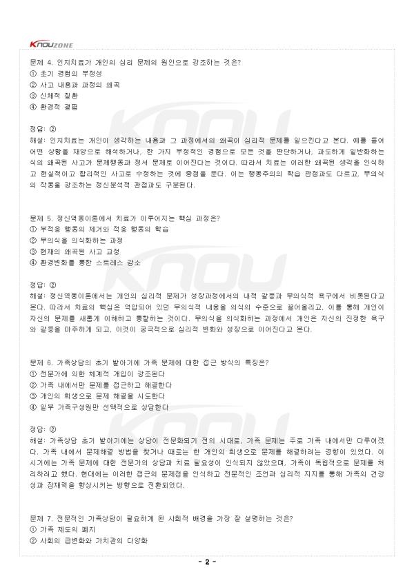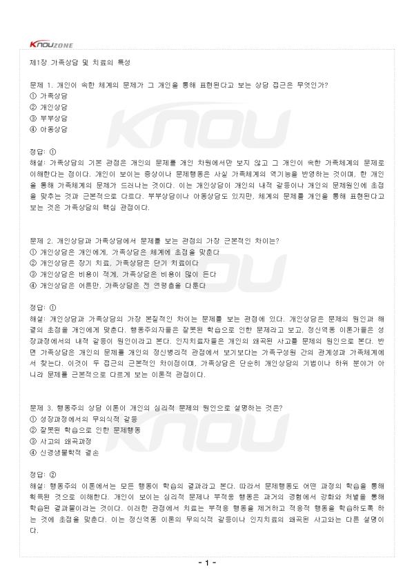 ¹®Á¦ 1. °³ÀÎÀÌ ¼ÓÇÑ Ã¼°èÀÇ ¹®Á¦°¡ ±× °³ÀÎÀ» ÅëÇØ Ç¥ÇöµÈ´Ù°í º¸´Â »ó´ã Á¢±ÙÀº ¹«¾ùÀΰ¡? ¨ç °¡Á·»ó´ã ¨è °³Àλó´ã ¨é ºÎºÎ»ó´ã ¨ê ¾Æµ¿»ó´ã Á¤´ä: ¨ç ÇØ¼³: °¡Á·»ó´ãÀÇ ±âº» °üÁ¡Àº °³ÀÎÀÇ ¹®Á¦¸¦ °³ÀÎ Â÷¿ø¿¡¼¸¸ º¸Áö ¾Ê°í ±× °³ÀÎÀÌ ¼ÓÇÑ °¡Á·Ã¼°èÀÇ ¹®Á¦·Î ÀÌÇØÇÑ´Ù´Â Á¡ÀÌ´Ù. °³ÀÎÀÌ º¸ÀÌ´Â Áõ»óÀ̳ª ¹®Á¦ÇൿÀº »ç½Ç °¡Á·Ã¼°èÀÇ ¿ª±â´ÉÀ» ¹Ý¿µÇÏ´Â °ÍÀ̸ç, ÇÑ °³ÀÎÀ» ÅëÇØ °¡Á·Ã¼°èÀÇ ¹®Á¦°¡ µå·¯³ª´Â °ÍÀÌ´Ù. ÀÌ´Â °³Àλó´ãÀÌ °³ÀÎÀÇ ³»Àû °¥µîÀ̳ª °³ÀÎÀÇ ¹®Á¦¿øÀο¡ ÃÊÁ¡À» ¸ÂÃß´Â °Í°ú ±Ùº»ÀûÀ¸·Î ´Ù¸£´Ù. ºÎºÎ»ó´ãÀ̳ª ¾Æµ¿»ó´ãµµ ÀÖÁö¸¸, ü°èÀÇ ¹®Á¦¸¦ °³ÀÎÀ» ÅëÇØ Ç¥ÇöµÈ´Ù°í º¸´Â °ÍÀº °¡Á·»ó´ãÀÇ ÇÙ½É °üÁ¡ÀÌ´Ù. ¹®Á¦ 2. °³Àλó´ã°ú °¡Á·»ó´ã¿¡¼ ¹®Á¦¸¦ º¸´Â °üÁ¡ÀÇ °¡Àå ±Ùº»ÀûÀÎ Â÷ÀÌ´Â? ¨ç °³Àλó´ãÀº °³Àο¡°Ô, °¡Á·»ó´ãÀº ü°è¿¡ ÃÊÁ¡À» ¸ÂÃá´Ù ¨è °³Àλó´ãÀº Àå±â Ä¡·á, °¡Á·»ó´ãÀº ´Ü±â Ä¡·áÀÌ´Ù ¨é °³Àλó´ãÀº ºñ¿ëÀÌ Àû°Ô, °¡Á·»ó´ãÀº ºñ¿ëÀÌ ¸¹ÀÌ µç´Ù ¨ê °³Àλó´ãÀº ¾î¸¥¸¸, °¡Á·»ó´ãÀº Àü ¿¬·ÉÃþÀ» ´Ù·é´Ù Á¤´ä: ¨ç ÇØ¼³: °³Àλó´ã°ú °¡Á·»ó´ãÀÇ °¡Àå º»ÁúÀûÀÎ Â÷ÀÌ´Â ¹®Á¦¸¦ º¸´Â °üÁ¡¿¡ ÀÖ´Ù. °³Àλó´ãÀº ¹®Á¦ÀÇ ¿øÀΰú ÇØ°áÀÇ ÃÊÁ¡À» °³Àο¡°Ô ¸ÂÃá´Ù. ÇൿÁÖÀÇÀÚµéÀº À߸øµÈ ÇнÀÀ¸·Î ÀÎÇÑ ¹®Á¦¶ó°í º¸°í, Á¤½Å¿ªµ¿ À̷а¡µéÀº ¼ºÀå°úÁ¤¿¡¼ÀÇ ³»Àû °¥µîÀÌ ¿øÀÎÀ̶ó°í º»´Ù. ÀÎÁöÄ¡·áÀÚµéÀº °³ÀÎÀÇ ¿Ö°îµÈ »ç°í¸¦ ¹®Á¦ÀÇ ¿øÀÎÀ¸·Î º»´Ù. ¹Ý¸é °¡Á·»ó´ãÀº °³ÀÎÀÇ ¹®Á¦¸¦ °³ÀÎÀÇ Á¤½Åº´¸®Àû °üÁ¡¿¡¼ º¸±âº¸´Ù´Â °¡Á·±¸¼º¿ø °£ÀÇ °ü°è¼º°ú °¡Á·Ã¼°è¿¡¼ ã´Â´Ù. À̰ÍÀÌ µÎ Á¢±ÙÀÇ ±Ùº»ÀûÀÎ Â÷ÀÌÁ¡À̸ç, °¡Á·»ó´ãÀº ´Ü¼øÈ÷ °³Àλó´ãÀÇ ±â¹ýÀ̳ª ÇÏÀ§ ºÐ¾ß°¡ ¾Æ´Ï¶ó ¹®Á¦¸¦ ±Ùº»ÀûÀ¸·Î ´Ù¸£°Ô º¸´Â ÀÌ·ÐÀû °üÁ¡ÀÌ´Ù. - Áß·« - |