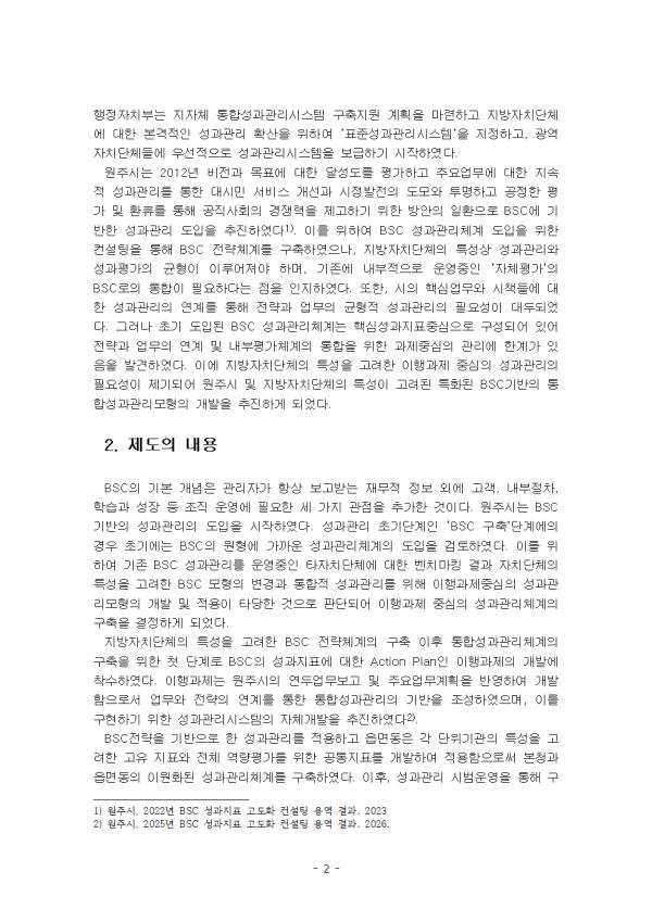 ÀÌ ·¹Æ÷Æ®´Â Áö¹æÀÚÄ¡´Üü°¡ ¿î¿µÇϰí ÀÖ´Â ¼º°ú°ü¸® Á¦µµÀÇ »ç·Ê¸¦ Á¶»çÇÏ¿© ¼³¸íÇϰí, ÇѰèÁ¡°ú ¹ßÀü¹æ¾È¿¡ ´ëÇØ Á¦½ÃÇÏ¿´´Ù.