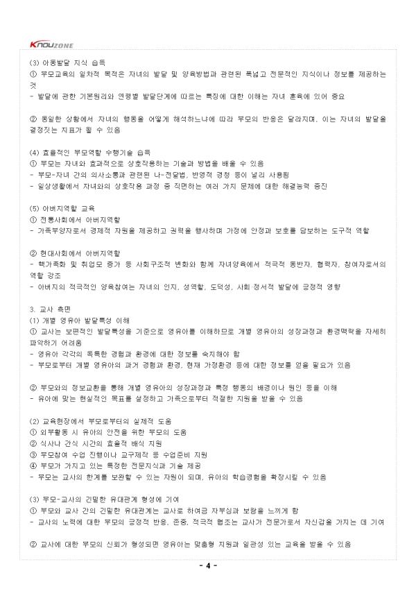 ¥°. ºÎ¸ð±³À°ÀÇ °³³ä 1. ºÎ¸ð¿ªÇÒÀÇ Æ¯¼ö¼º (1) ºÎ¸ð¿ªÇÒÀÇ ÀÇ¹Ì ¨ç ´ëºÎºÐÀÇ »ç¶÷ÀÌ ÀÏÁ¤ ¿¬·ÉÀÌ µÇ¸é °æÇèÇÏ´Â ¿ªÇÒ - °¡Àå Èûµé°í Áß¿äÇÑ ¿ªÇÒÀÓ¿¡µµ ü°èÀûÀÎ ÈÆ·ÃÀ̳ª ±³À° ¾øÀÌ ¸Ã°Ô µÊ - Àΰ£ÀÌ Å¾¼ ÃÖÃÊ·Î Á¢Çϴ ȯ°æÀº °¡Á¤À̸ç, ºÎ¸ð´Â ÀÚ³à ¼ºÀå¿¡ ÇʼöÀûÀ̰í Áß¿äÇÑ ¿ªÇÒ ´ã´ç (2) ÀüÅë»çȸ¿Í Çö´ë»çȸÀÇ Â÷ÀÌ ¨ç ÀüÅë»çȸ - È®´ë°¡Á·°ú ¸¶À» °øµ¿Ã¼¿¡¼ ÀÚ³à¾çÀ° ÁöħÀÌ ÇÑ ¼¼´ë¿¡¼ ´ÙÀ½ ¼¼´ë·Î ÀÚ¿¬½º·´°Ô Àü´Þ - ÀÏ»ó»ýȰ¿¡¼ ºÎ¸ð¿ªÇÒÀ» ¹è¿ï ¼ö ÀÖ¾î ºÎ¸ð¿ªÇÒ ÇнÀ¿¡ ´ëÇÑ ¿ä±¸°¡ Àû¾úÀ½ ¨è Çö´ë»çȸ - ÇÙ°¡Á·È, ¸Â¹úÀ̺κΠÁõ°¡, ¸¸È¥, ºñÈ¥, ÀÌÈ¥ µîÀ¸·Î ºÎ¸ð¼¼´ëÀÇ ÀÚ³à¾çÀ° Áö½Ä Àü¼ö°¡ ¾î·Á¿ò - ºÎ¸ð°¡ ºÎ¸ð·Î¼ÀÇ ¿ªÇÒÀ» ¹Ù¶÷Á÷ÇÏ°Ô ¼öÇàÇϱâ À§ÇÑ ºÎ¸ð±³À°ÀÌ Àý½ÇÈ÷ ¿ä±¸µÊ 2. ºÎ¸ð±³À° °³³äÀÇ º¯È (1) Ãʱ⠺θð±³À° °³³ä ¨ç 1920³â´ë ÀÌÈÄ ºÎ¸ð±³À°¿¡ °üÇÑ ¿¬±¸ ½ÃÀÛ - ±³»ç³ª Àü¹®°¡°¡ ºÎ¸ð¸¦ °¡¸£Ä¡°í ºÎ¸ð´Â ¹è¿î´Ù´Â ¼öÁ÷°ü°è°¡ °Á¶µÈ ¼Ò±ØÀû °³³ä (2) Çö´ëÀû ºÎ¸ð±³À° °³³ä ¨ç 1960³â´ë ÀÌÈÄ Çìµå½ºÅ¸Æ® ¿îµ¿ µîÀÇ ¿µÇâÀ¸·Î Àû±ØÀû °³³äÀ¸·Î Àüȯ - Àü¹®°¡°¡ °¡¸£Ä¡°í ºÎ¸ð°¡ ¹è¿ì´Â ÀϹæÀû ¹æÇâÀÌ ¾Æ´Ñ µ¿µîÇÑ ÀÔÀå¿¡¼ ºÎ¸ð°¡ ±³À°È°µ¿¿¡ Âü¿© - ÆòµîÇÑ »óÈ£ÀÛ¿ëÀ» ÅëÇØ ÀÌ·ïÁö´Â »óÈ£º¸¿ÏÀû °üÁ¡ÀÌ ¿ì¼¼ - ±³»ç¿Í ºÎ¸ð°¡ ¼·Î¸¦ ÁöÁöÇϸç Àϰü¼º ÀÖ´Â ±³À°À» µµ¸ðÇØ¾ß ÇÑ´Ù´Â Àǹ̷ΠȮ´ë 3. ºÎ¸ð±³À°ÀÇ Á¤ÀÇ (1) ¿¡¾îÇÏÆ®ÀÇ Á¤ÀÇ ¨ç ºÎ¸ð·Î¼ÀÇ ¿ªÇÒ°ú ±â´ÉÀ» ¿øÈ°È÷ ¼öÇàÇϵµ·Ï ºÎ¸ð¿¡°Ô Á¤º¸³ª Áö½ÄÀ» Àü´ÞÇÏ°í ±â¼úÀ» °¡¸£Ä¡´Â °Í (2) Çѱ¹ºÎ¸ð±³À°ÇÐȸÀÇ Á¤ÀÇ ¨ç ºÎ¸ð±³À°ÀÚÀÇ ÀÚÁú Çâ»ó°ú ºÎ¸ðÀÇ ¿ªÇÒ ¼öÇà¿¡ º¯È¸¦ ÀÏÀ¸Å°±â À§ÇÏ¿© ºÎ¸ð±³À°ÀÚ, ºÎ¸ð¿Í ¿¹ºñºÎ¸ð, Àڳฦ ´ë»óÀ¸·Î ¸ðµç ±³À°ÀûÀÎ ¹æ¹ýÀ» µ¿¿øÇÏ¿© ±³À°Çϴ Ȱµ¿ - Áß·« - |
