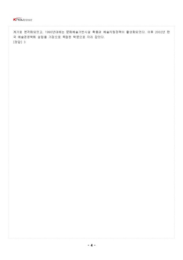 1. ¹®È¿Í ¿¹¼ú 1) ¹®È ¨ç ±³¾çÀ¸·Î¼ÀÇ ¹®È ¨è ¿¹¼ú ¹× Á¤¼Àû »ê¹°·Î¼ÀÇ ¹®È ¨é ±ÔÄ¢À̳ª ±ÔÀ²·Î¼ÀÇ ¹®È ¨ê ÀÏ»óÀû ¿ä¼Ò·Î¼ÀÇ ¹®È 2) ¿¹¼ú ¹ÌÀû °¡Ä¡¸¦ Ãß±¸Çϴ âÀÇÀûÀΠȰµ¿°ú ±× âÀÛ¹°À» ÀǹÌÇÔ 2. ¿¹¼ú°æ¿µÀ̶õ ¹«¾ùÀΰ¡ 1) ¿¹¼ú°æ¿µÀÇ ÀÇ¹Ì¿Í Æ¯¼º ¨ç ¿¹¼ú°ú °æ¿µÀ» Á¢¸ñ½ÃŰ´Â Ȱµ¿ ¨è ¿¹¼ú°¡µéÀÇ ¿¹¼úȰµ¿ ¹× ¿¹¼ú °ü·Ã Á¶Á÷ ¹× ´ÜüÀÇ È¿À²Àû ¿î¿µÀ» ¸ñÇ¥·Î ÇÔ 2) ±¹³»¿¹¼ú°æ¿µÀÇ µµÀÔ¹è°æ ¨ç º»°ÝÀûÀ¸·Î µµÀÔµÈ ½ÃÁ¡Àº ¿¹¼úÀÇ Àü´ç °³°ü, °üÂù ±¹¸³Çö´ë¹Ì¼ú°ü °Ç¸³ µî ´ëÇ¥ÀûÀÎ ´ë±Ô¸ð ¹®È°ø°£ÀÌ °Ç¸³µÇ´ø 1980³â´ë ÈÄ¹Ý ¨è 1990³â´ë¿¡´Â ¹®È¿¹¼ú±â¹Ý½Ã¼³ÀÌ ´õ¿í È®ÃæµÇ¾úÀ¸¸ç ¿¹¼úÁö¿øÁ¤Ã¥ ¶ÇÇÑ º»°ÝÀûÀ¸·Î Ȱ¹ßÇØÁö±â ½ÃÀÛÇÑ ½Ã±âÀÓ ¨é ¿¹¼ú°æ¿µÀÌ Çй®À¸·Î µµÀÔµÈ ½Ã±âµµ 1990³â´ë ¹«·Æ ¨ê 2000³â´ë µé¾î ¿¹¼ú¹®È½ÃÀåÀº ±Þ°ÝÈ÷ ¼ºÀå ¨ë ±¹³» ¿¹¼ú°æ¿µÀÌ ÇϳªÀÇ µ¶¸³µÈ Çй®À¸·Î º»°ÝÀûÀ¸·Î µµÀÔµÈ ½Ã±â´Â Çѱ¹ ¿¹¼ú°æ¿µÇÐȸ°¡ ¼³¸³µÈ 2002³âÀ» ½ÃÀÛÁ¡À¸·Î º¼ ¼ö ÀÖÀ½ <1Àå ÃâÁ¦¿¹»ó¹®Á¦> 1. ´ÙÀ½¿¡¼ ¼³¸íÇÏ´Â °ÍÀº ¹«¾ùÀΰ¡? ÀÚ¿¬ÀûÀÎ Çö»ó°ú´Â ´ë¸³µÇ´Â °³³äÀ¸·Î Àΰ£ÀÌ ÀÚ¿¬È¯°æ¿¡ ÀûÀÀÇϱâ À§ÇØ ¸¸µç »ýȰ¾ç½Ä ¹× ´Ù¾çÇÑ È°µ¿À» ¸ðµÎ Æ÷ÇÔÇÏ´Â °³³ä ¨ç ¹®È ¨è °æ¿µ ¨é ¿¹¼ú ¨ê üÀ° [ÇØ¼³] ¹®È¿¡ ´ëÇÑ ¼³¸íÀÌ´Ù. [Á¤´ä] 1 - Áß·« - |