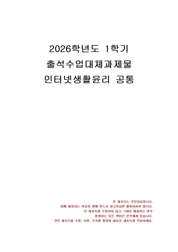 | 2026³â 1Çбâ ÀÎÅͳݻýȰÀ±¸® Ãâ¼®¼ö¾÷´ëü½ÃÇè °úÁ¦¹°(µðÁöÅÐ »ýȰ ½Çõ °æÇè º¸°í¼) |
