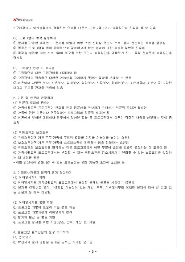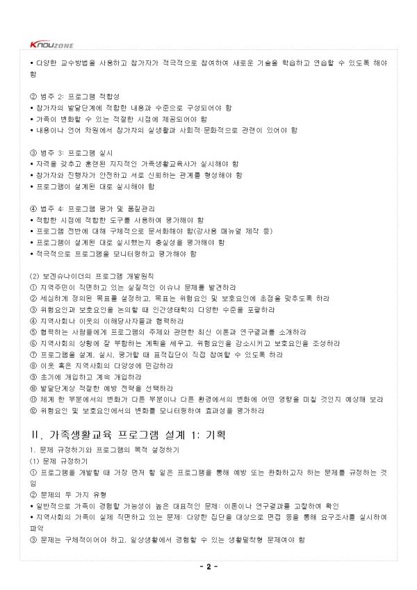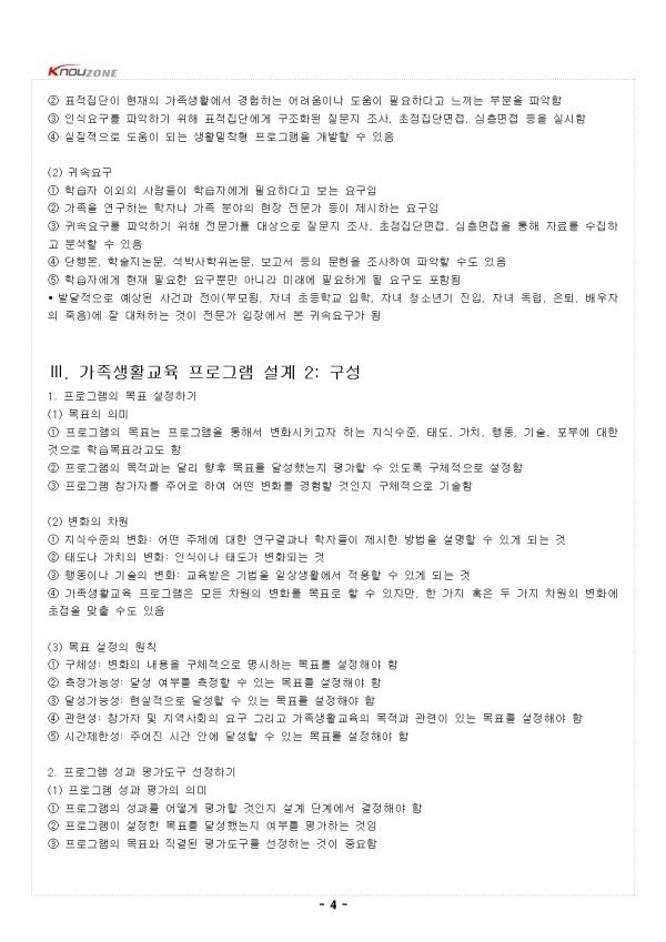 ¥°. °¡Á·»ýȰ±³À° ÇÁ·Î±×·¥ °³¹ß°úÁ¤ ¹× ¿øÄ¢ 1. °¡Á·»ýȰ±³À° ÇÁ·Î±×·¥ °³¹ß°úÁ¤ (1) ÇÁ·Î±×·¥ °³¹ßÀÇ ÀÇ¹Ì ¨ç ÇÁ·Î±×·¥ °³¹ßÀº ¼³°è, ½Ç½Ã, Æò°¡ ÈÄ ¼öÁ¤ÇÏ¿© º¸±ÞÇÏ´Â ÀÏ·ÃÀÇ °úÁ¤À» °Åħ ¨è ÀÌ·¯ÇÑ °úÁ¤Àº ¼·Î ¸Â¹°·Á ÀÖÀ¸¸ç ¼øÈ¯ÀûÀÎ °ü°èÀÓ (2) ÈÞÁîÀÇ 4´Ü°è ¸ðÇü ¨ç Á¦1´Ü°è ³»¿ë°èȹ: ¹«¾ùÀ», ¾î¶² À̷аú ¿¬±¸¸¦ ±â¹ÝÀ¸·Î ±³À°ÇÒ °ÍÀÎÁö, ±³À°¿¡ Âü¿©ÇÏ´Â °¡Á·ÀÌ Ã³ÇÑ ¸Æ¶ôÀº ¾î¶°ÇÑÁö, ¾î¶² ½Çõ±â¹ýÀ» »ç¿ëÇÒ °ÍÀÎÁö °èȹÇÏ´Â ´Ü°è ¨è Á¦2´Ü°è ±³¼ö°úÁ¤: ¾î¶»°Ô ±³À°ÇÒ °ÍÀÎÁö °èȹ¾ÈÀ» ÀÛ¼ºÇÏ°í ¾î¶² ¹æ½ÄÀ¸·Î Àü´ÞÇÒ °ÍÀÎÁö ÁغñÇÏ´Â ´Ü°è ¨é Á¦3´Ü°è ½Ç½Ã°úÁ¤: ½ÇÁ¦·Î ÇÁ·Î±×·¥ÀÇ Âü°¡ÀÚ¸¦ ¸ðÁýÇÏ°í ½Ç½ÃÇÏ´Â ´Ü°è ¨ê Á¦4´Ü°è Æò°¡: ÇÁ·Î±×·¥ÀÇ ´Ù¾çÇÑ Â÷¿ø, ´Ü±âÀûÀÎ ¼º°ú, Àå±âÀûÀÎ È¿°ú µîÀ» Æò°¡ÇÏ´Â ´Ü°è (3) ´ýÄ« µîÀÇ 5´Ü°è ¸ðÇü ¨ç Á¦1´Ü°è ¹®Á¦ºÐ¼®: ÇÁ·Î±×·¥À» ÅëÇØ ¿¹¹æ ¹× ¿ÏÈÇϰíÀÚ ÇÏ´Â ¹®Á¦¸¦ ±ÔÁ¤Çϰí, ÇÁ·Î±×·¥ÀÇ ¸ñÀû°ú Ç¥ÀûÁý´ÜÀ» °áÁ¤ÇÔ ¨è Á¦2´Ü°è ÇÁ·Î±×·¥ ¼³°è: Ç¥ÀûÁý´ÜÀÇ ¿ä±¸¸¦ ÆÄ¾ÇÇϰí ÇÁ·Î±×·¥ÀÇ ¸ñÇ¥¸¦ ¼³Á¤ÇÑ ÈÄ ÇÁ·Î±×·¥ ¼º°ú¸¦ Æò°¡ÇÏ´Â ¹æ¹ý°ú ÇÁ·Î±×·¥ ³»¿ë µîÀ» °áÁ¤ÇÔ ¨é Á¦3´Ü°è ÆÄÀÏ·µ °Ë»ç: ¼³°èÇÑ ÇÁ·Î±×·¥ ½Ã¾ÈÀ» ½Ç½ÃÇØ º¸°í ½Ã¾ÈÀ» ¼öÁ¤ÇÔ ¨ê Á¦4´Ü°è º»°Ë»ç: ÆÄÀÏ·µ °Ë»ç ´Ü°è¿¡¼ ¼öÁ¤ÇÑ ÇÁ·Î±×·¥À» ½Ç½ÃÇϰí ÇÁ·Î±×·¥ÀÇ È¿°ú¼ºÀ» Æò°¡ÇÔ ¨ë Á¦5´Ü°è º¸±Þ: ÃÖÁ¾ ¿Ï¼ºµÈ ÇÁ·Î±×·¥À» ´Ù¾çÇÑ °æ·Î¸¦ ÅëÇØ º¸±ÞÇϰí, ÇÁ·Î±×·¥ÀÇ È¿°ú¼ºÀ» ¾Ë¸®´Â º¸°í¼³ª ³í¹®À» ÀÛ¼ºÇÔ (4) ±èâ´ë µîÀÇ 4´Ü°è ¸ðÇü ¨ç Á¦1´Ü°è ±âȹ: ÇÁ·Î±×·¥¿¡¼ ÃÊÁ¡À» ¸ÂÃâ ¹®Á¦¸¦ ±ÔÁ¤ÇÏ°í ¿ä±¸µµ Á¶»ç, ÀÌ·Ð ¹× ¹®Çå °íÂû µîÀ» ¼öÇàÇÔ ¨è Á¦2´Ü°è ±¸¼º: ÇÁ·Î±×·¥ÀÇ ±¸¼º¿ä¼Ò¸¦ µµÃâÇϰí, ȸ±âº° ³»¿ëÀÇ Á¶Á÷¿ø¸®¿¡ µû¶ó Ȱµ¿À» ¹èºÐÇÔ ¨é Á¦3´Ü°è ½Ç½Ã: Àη°ú ÀÚ¿øÀ» ÅõÀÔÇÏ¿© ÇÁ·Î±×·¥À» ¼öÇà ¹× °ü¸®ÇÔ ¨ê Á¦4´Ü°è Æò°¡: È¿°ú¼ºÀ» °ËÁõÇϰí, Çǵå¹éÀ» ÅëÇØ ÇÁ·Î±×·¥À» ¹ßÀü½ÃÅ´ (5) ±³À°ÇÐ ºÐ¾ßÀÇ ¸ðÇü ¨ç ±³¼ö¼³°è ºÐ¾ßÀÇ ±³À° ÇÁ·Î±×·¥ °³¹ß ¸ðÇüÀ¸·Î, ºÐ¼®, ¼³°è, °³¹ß, ½Ç½Ã, Æò°¡ÀÇ ´Ù¼¸ ´Ü°è·Î ±¸¼ºµÊ ¨è ÇнÀÀÚÀÇ ¿ä±¸¿Í ÇнÀ¸ñÇ¥¸¦ ºÐ¼®ÇÑ µÚ, ±³À°¸ñÇ¥¡¤³»¿ë¡¤Æò°¡¹æ¹ýÀ» ¼³°èÇϰí, ÇнÀÀÚ·á¿Í ÇÁ·Î±×·¥À» °³¹ßÇÑ ÈÄ ½ÇÁ¦ ±³À°À» ½Ç½ÃÇÏ°í Æò°¡ÇÔ 2. °¡Á·»ýȰ±³À° ÇÁ·Î±×·¥ °³¹ß¿øÄ¢ (1) ½º¸ô µîÀÇ È¿°úÀûÀÎ ÇÁ·Î±×·¥ÀÇ ¿øÄ¢ ¨ç ¹üÁÖ 1: ÇÁ·Î±×·¥ ¼³°è ¹× ³»¿ë • ¸íÈ®ÇÑ ¸ñÀû ¹× ¸ñÇ¥°¡ ÀÖ¾î¾ß ÇÔ • ÀÌ·Ð ¹× ¿¬±¸¿¡ Åä´ë¸¦ µÎ¾î¾ß ÇÔ • ½Ã°£Àû Ãø¸é(ÃÑ ±³À°½Ã°£, ±³À°±â°£)°ú ³»¿ëÀû Ãø¸é(Ȱµ¿ÀÇ °µµ ¹× º¹ÀâÇÑ Á¤µµ)¿¡¼ ÃæºÐÇØ¾ß ÇÔ • Æ÷°ýÀûÀ¸·Î ´Ù¾çÇÑ ¿äÀÎÀ» ´Ù·ç¾î¾ß ÇÔ • ´Ù¾çÇÑ ±³¼ö¹æ¹ýÀ» »ç¿ëÇϰí Âü°¡ÀÚ°¡ Àû±ØÀûÀ¸·Î Âü¿©ÇÏ¿© »õ·Î¿î ±â¼úÀ» ÇнÀÇÏ°í ¿¬½ÀÇÒ ¼ö ÀÖµµ·Ï ÇØ¾ß ÇÔ ¨è ¹üÁÖ 2: ÇÁ·Î±×·¥ ÀûÇÕ¼º • Âü°¡ÀÚÀÇ ¹ß´Þ´Ü°è¿¡ ÀûÇÕÇÑ ³»¿ë°ú ¼öÁØÀ¸·Î ±¸¼ºµÇ¾î¾ß ÇÔ • °¡Á·ÀÌ º¯ÈÇÒ ¼ö ÀÖ´Â ÀûÀýÇÑ ½ÃÁ¡¿¡ Á¦°øµÇ¾î¾ß ÇÔ • ³»¿ëÀ̳ª ¾ð¾î Â÷¿ø¿¡¼ Âü°¡ÀÚÀÇ ½Ç»ýȰ°ú »çȸÀû¡¤¹®ÈÀûÀ¸·Î °ü·ÃÀÌ ÀÖ¾î¾ß ÇÔ - Áß·« - |