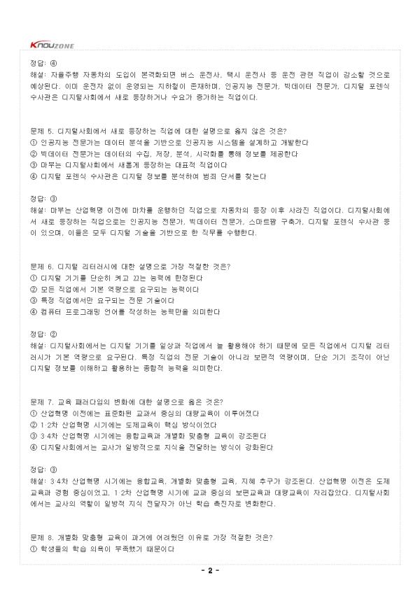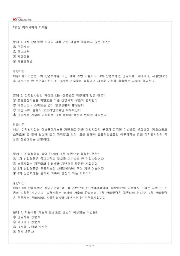 ¹®Á¦ 1. 4Â÷ »ê¾÷Çõ¸í ½Ã´ëÀÇ »çȸ ±â¹Ý ±â¼ú·Î ÀûÀýÇÏÁö ¾ÊÀº °ÍÀº? ¨ç ÀΰøÁö´É ¨è Áõ±â±â°ü ¨é ºòµ¥ÀÌÅÍ ¨ê »ç¹°ÀÎÅÍ³Ý Á¤´ä: ¨è ÇØ¼³: Áõ±â±â°üÀº 1Â÷ »ê¾÷Çõ¸íÀ» À̲ö »çȸ ±â¹Ý ±â¼úÀÌ´Ù. 4Â÷ »ê¾÷Çõ¸íÀº ÀΰøÁö´É, ºòµ¥ÀÌÅÍ, »ç¹°ÀÎÅͳÝÀ» ±â¹ÝÀ¸·Î ÇÑ ÃÊ¿¬°á»çȸÀ̸ç, ÀÌ·¯ÇÑ ±â¼úµéÀÌ À¶ÇÕµÇ¾î »õ·Î¿î °¡Ä¡¸¦ âÃâÇÏ´Â ½Ã´ë·Î Á¤ÀǵȴÙ. ¹®Á¦ 2. µðÁöÅлçȸÀÇ Æ¯¼º¿¡ ´ëÇÑ ¼³¸íÀ¸·Î ÀûÀýÇÏÁö ¾ÊÀº °ÍÀº? ¨ç Á¤º¸Åë½Å±â¼úÀ» ±â¹ÝÀ¸·Î ±âÁ¸ »ê¾÷»çȸ ±¸Á¶°¡ º¯ÈÇÑ´Ù ¨è Ű¿À½ºÅ©³ª ½º¸¶Æ®Æù ¾ÛÀÌ ÀÏ»ó»ýȰ¿¡ Ȱ¿ëµÈ´Ù ¨é ¸ðµç »çȸ Ȱµ¿ÀÌ ¿ÀÇÁ¶óÀÎÀ¸·Î¸¸ ÀÌ·ç¾îÁø´Ù ¨ê ÀΰøÁö´É ±â¼úÀÇ °¡¼ÓÈ·Î ±³À° ºÐ¾ß¿¡ Çõ½ÅÀû º¯È°¡ ¿¹»óµÈ´Ù Á¤´ä: ¨é ÇØ¼³: µðÁöÅлçȸ´Â Á¤º¸Åë½Å±â¼úÀ» ±â¹ÝÀ¸·Î ±âÁ¸ »ê¾÷»çȸÀÇ ±¸Á¶°¡ µðÁöÅÐ ±â¹ÝÀ¸·Î º¯ÈÇϸç, Ű¿À½ºÅ©¿Í ½º¸¶Æ®Æù ¾Û µîÀÌ ÀÏ»ó¿¡ ±íÀÌ ÀÚ¸®Àâ°í ÀÖ´Ù. ¸ðµç Ȱµ¿ÀÌ ¿ÀÇÁ¶óÀÎÀ¸·Î¸¸ ÀÌ·ç¾îÁö´Â °ÍÀº µðÁöÅлçȸÀÇ Æ¯¼º°ú Á¤¹Ý´ëµÇ´Â ¼³¸íÀÌ´Ù. - Áß·« - |